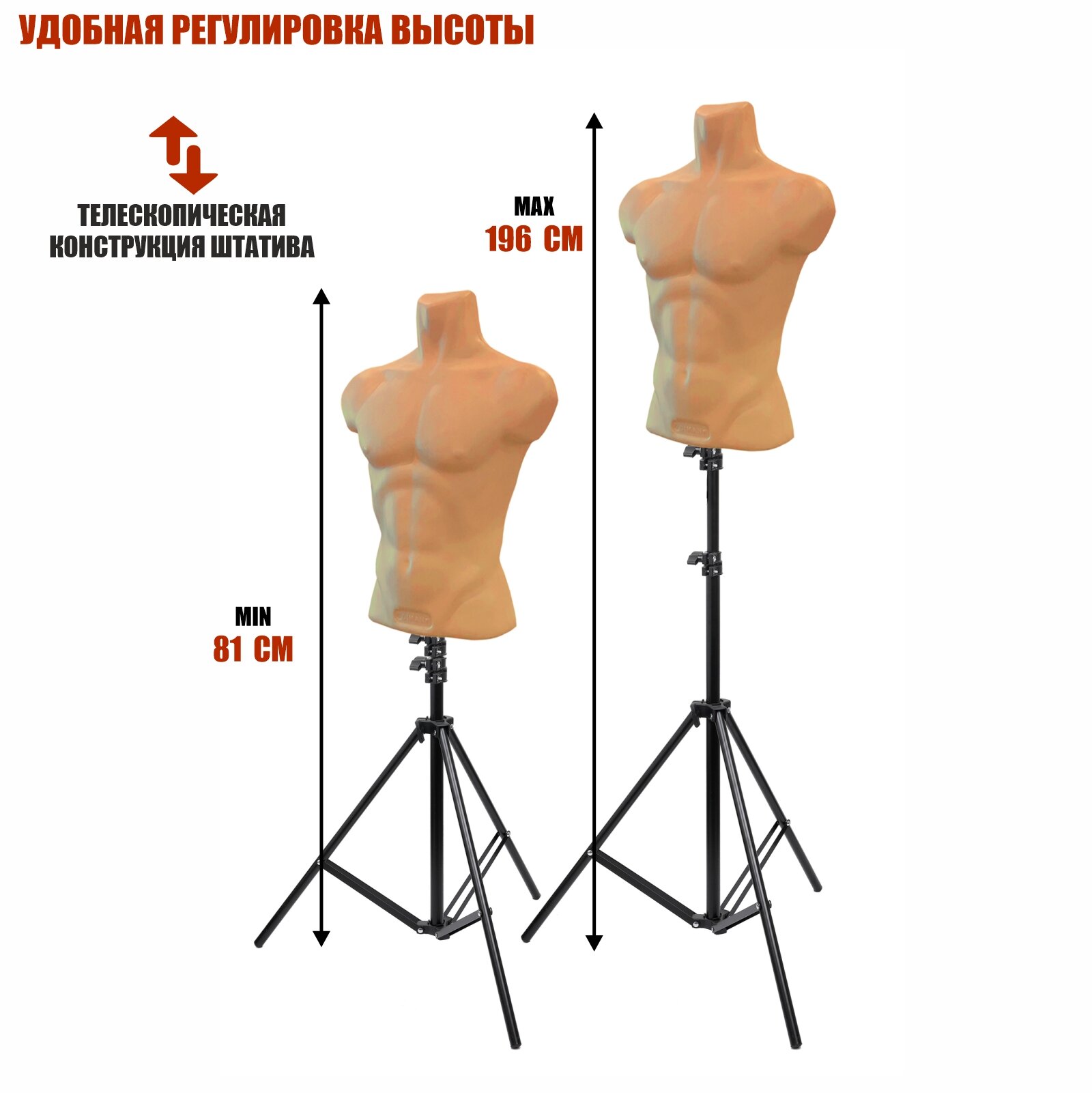 Отзывы на Манекен 640 мм, торс мужской телесный пластиковый на напольной стойке JBH