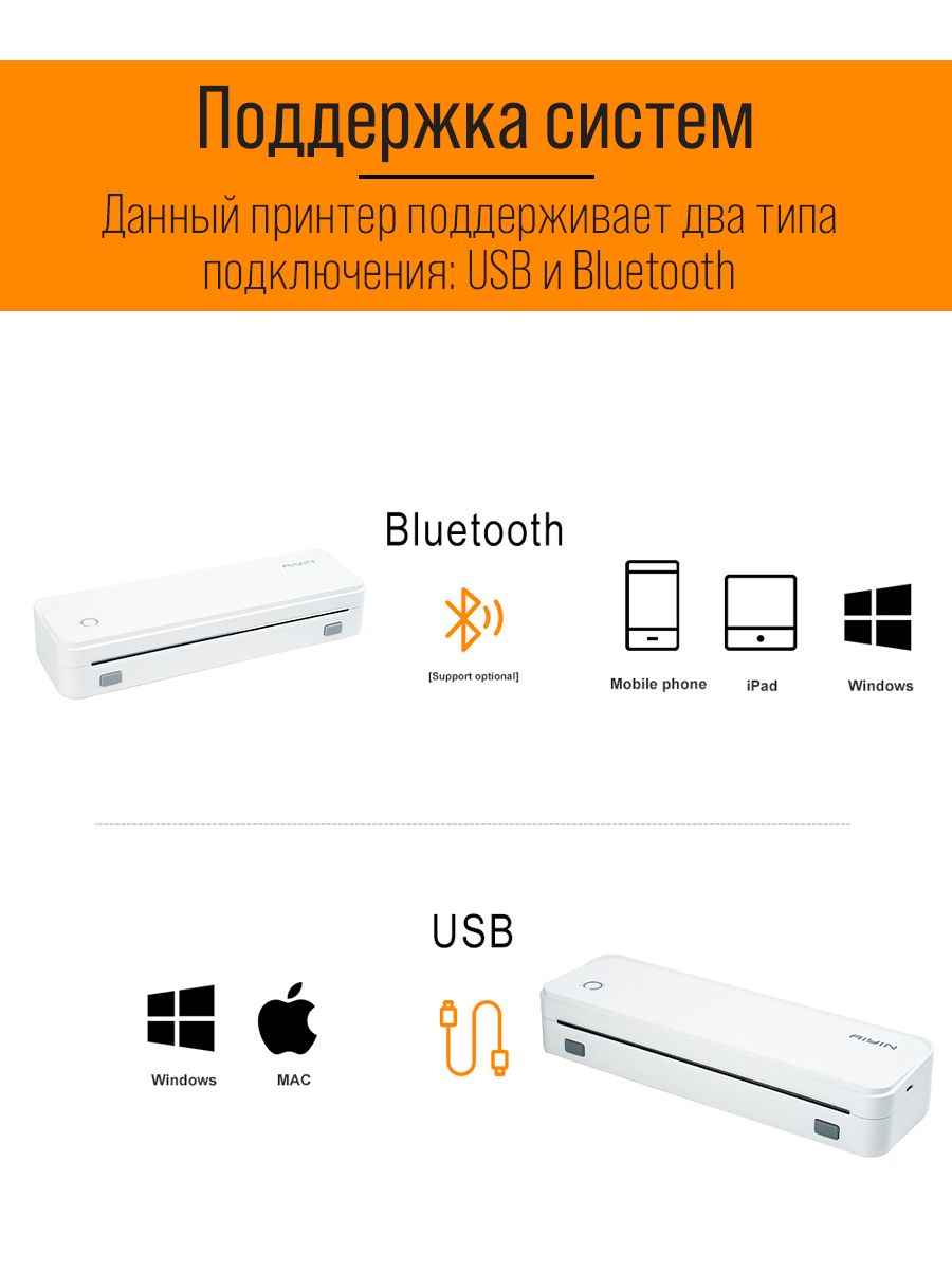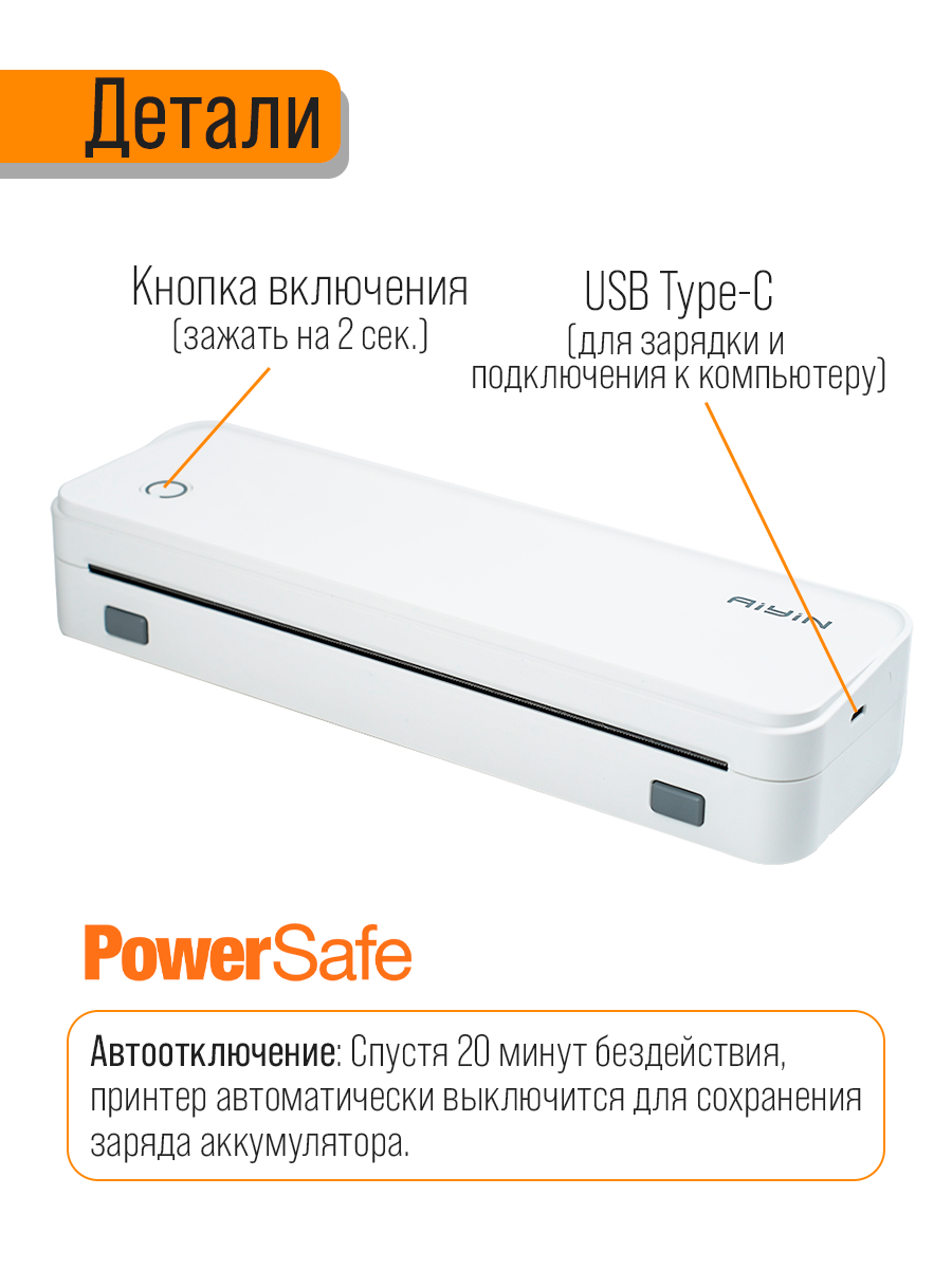 Беспроводной термопринтер A4 без заправки чернил, 2600 мАч (печать с iOS/Android) информация: