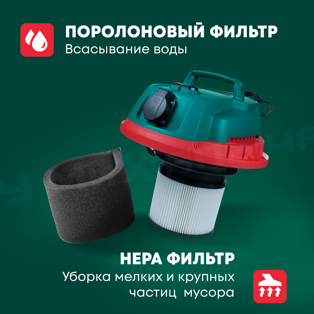 10 цен на Пылесос строительный Mika MVC-20, 1400 Вт, бак 20 л, сухая и влажная уборка