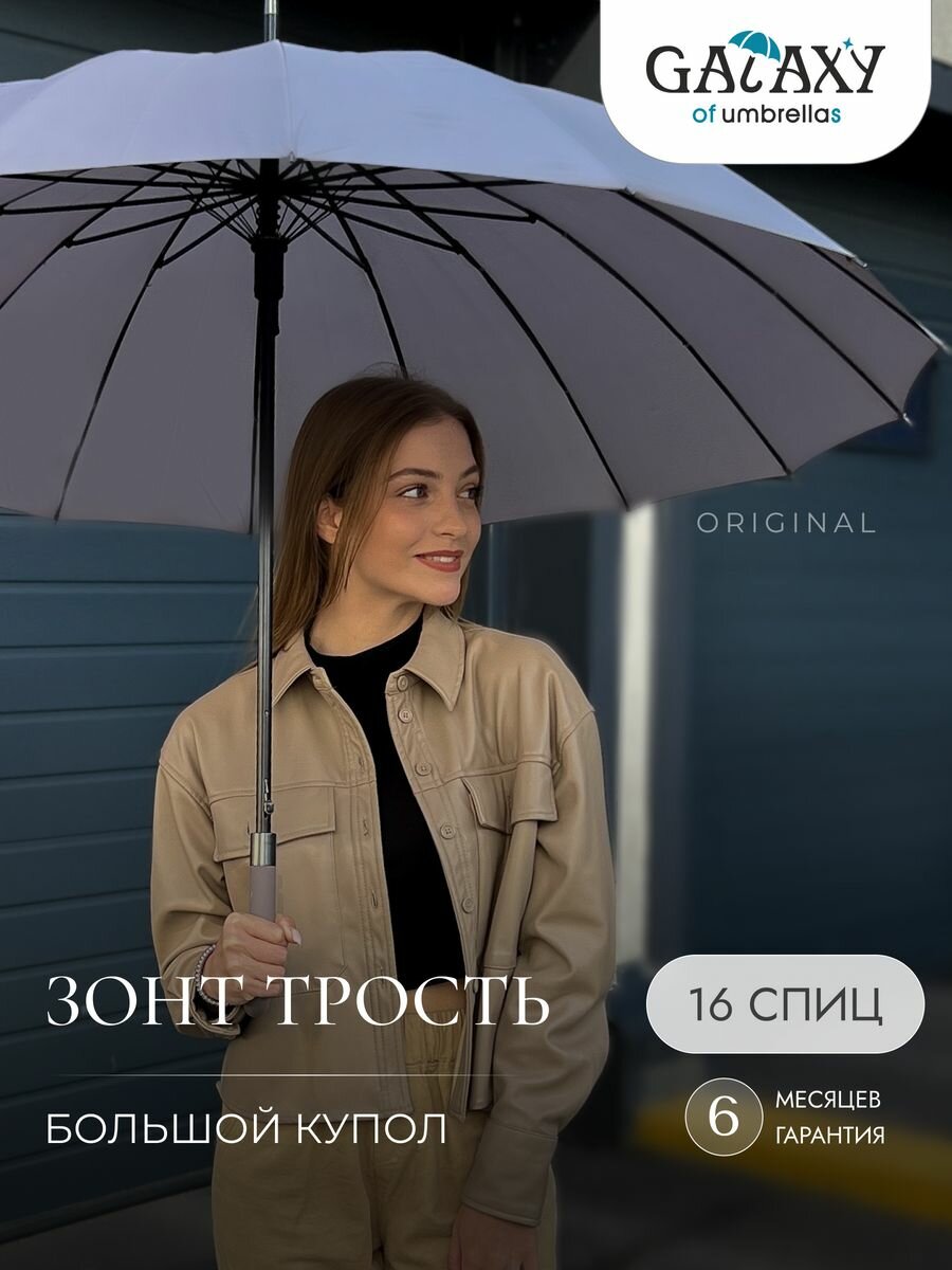 Зонт мужской трость GALAXY Umbrella Антиветер, зонт-трость, зонт с чехлом, цвет черный, 24 спицы, купол 136 см, ручка крюком
