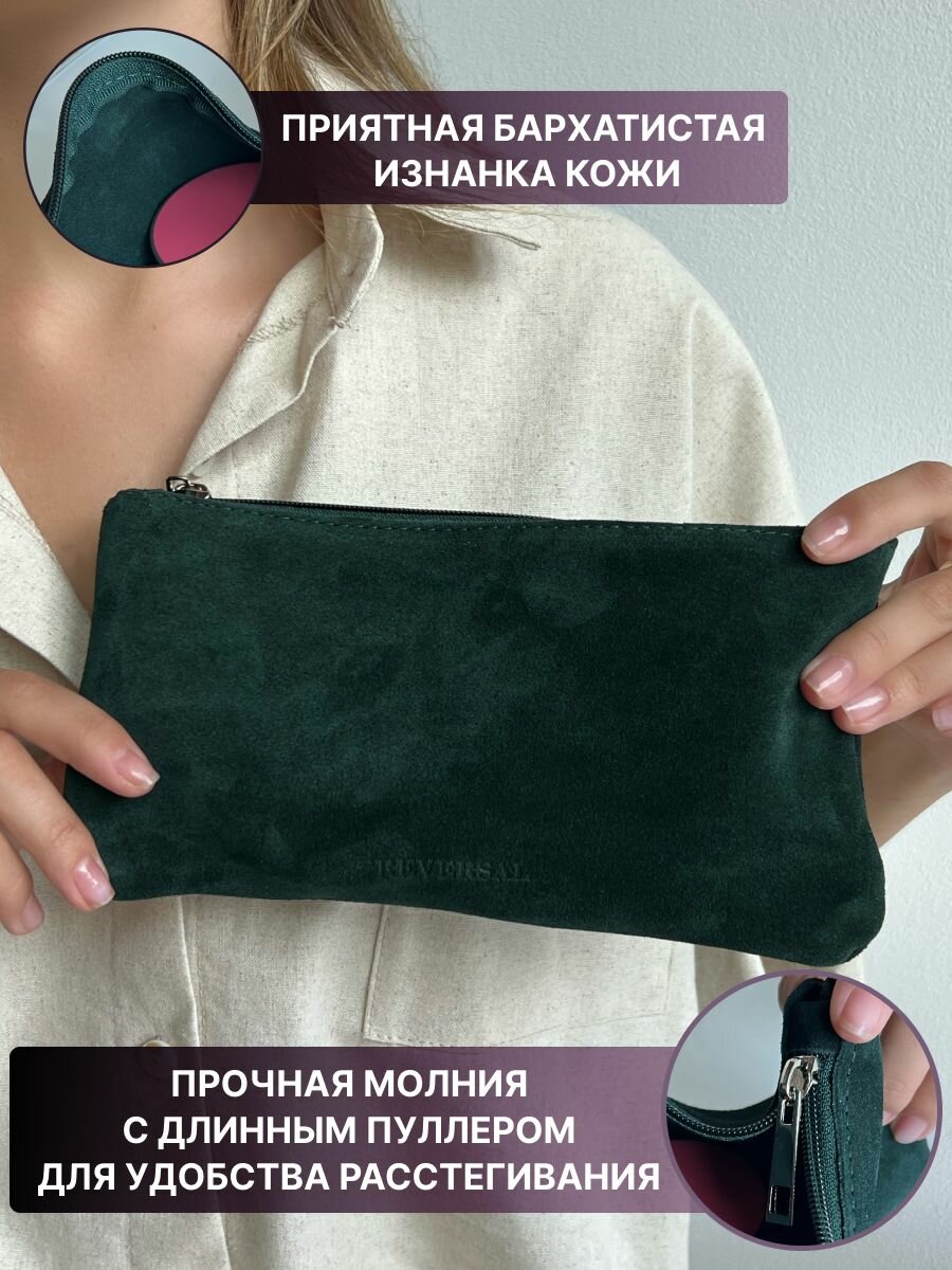 10 цен на Косметичка натуральная замша на молнии плоская,Reversal,8856R_Изумрудный-замша