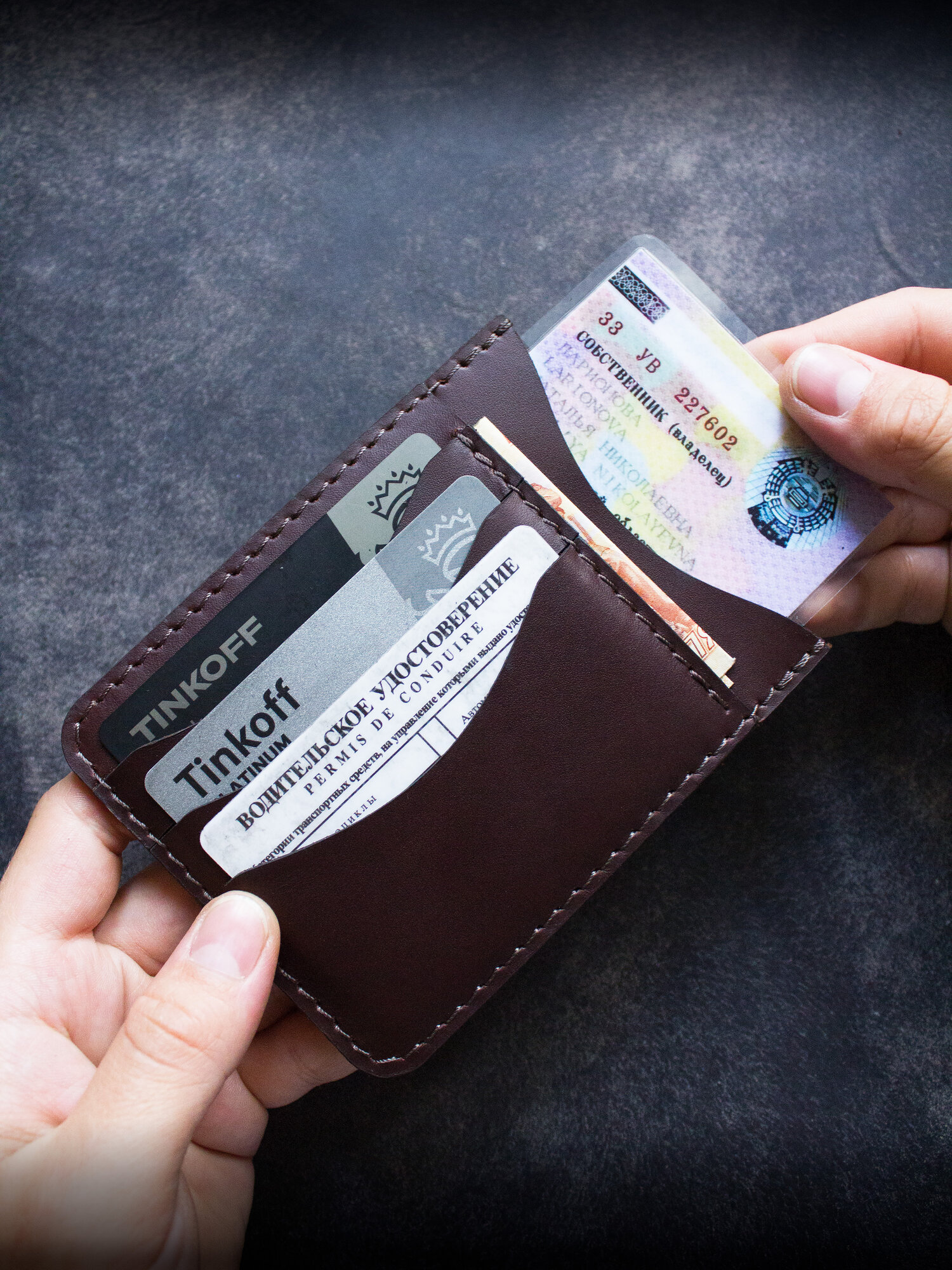 Отзывы на Картхолдер для автодокументов (СТС, права, карты, наличные) KOVACH из натуральной кожи коричневого цвета ручной работы