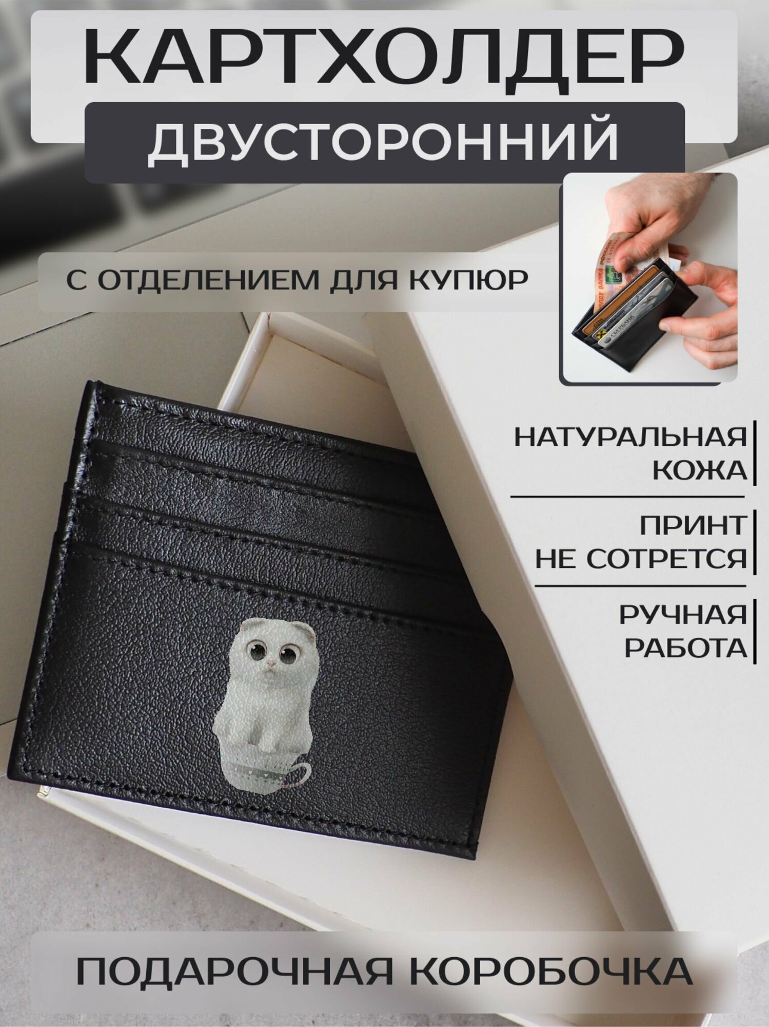 Кредитница / Футляр для карт / Картхолдер Russian.Handmade из натуральной кожи с принтом Милые няшные кошки №5 информация: