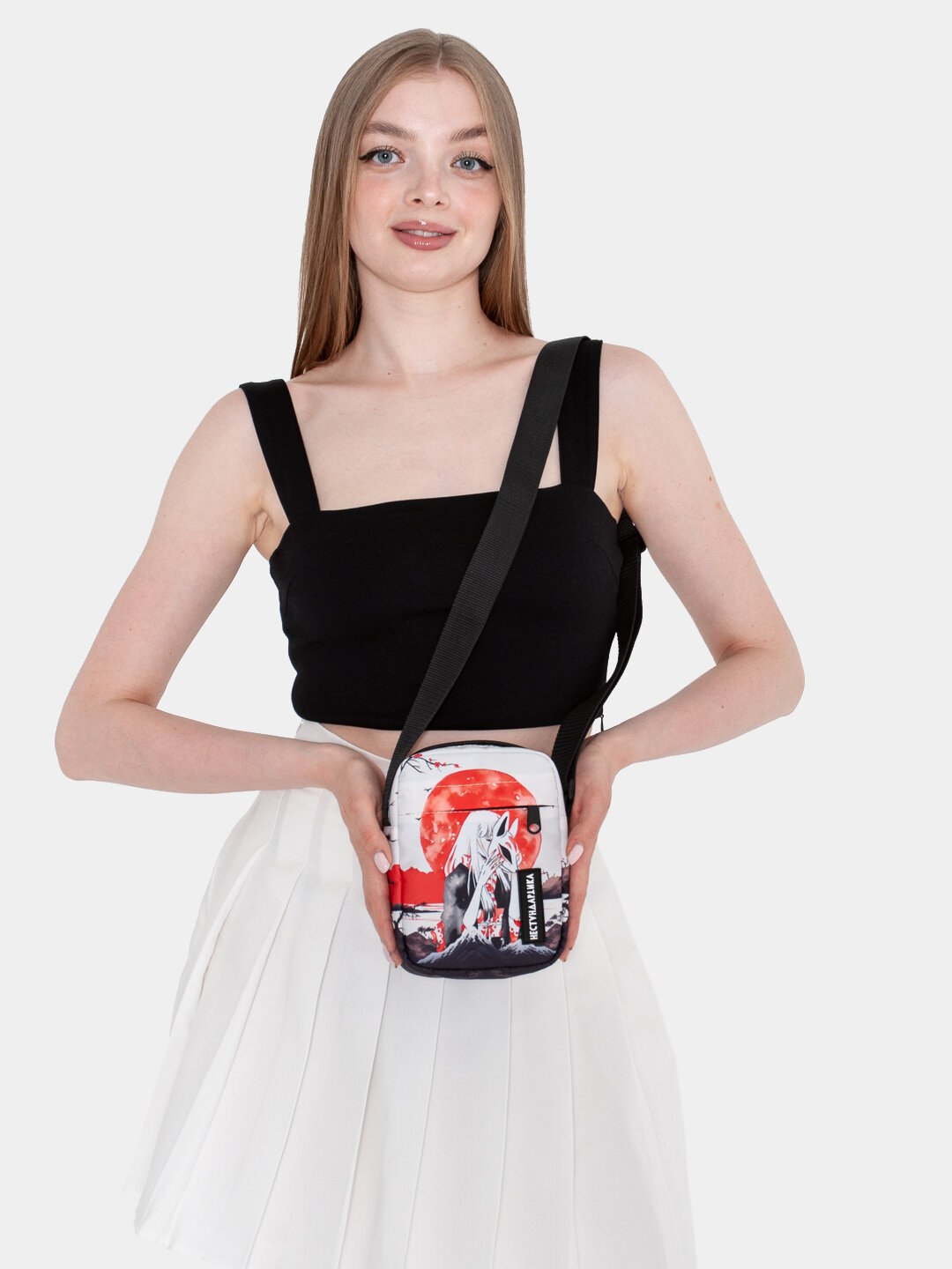 Отзывы на Мини-сумка мессенджер женская, мужская через плечо для телефона с принтом Кицунэ