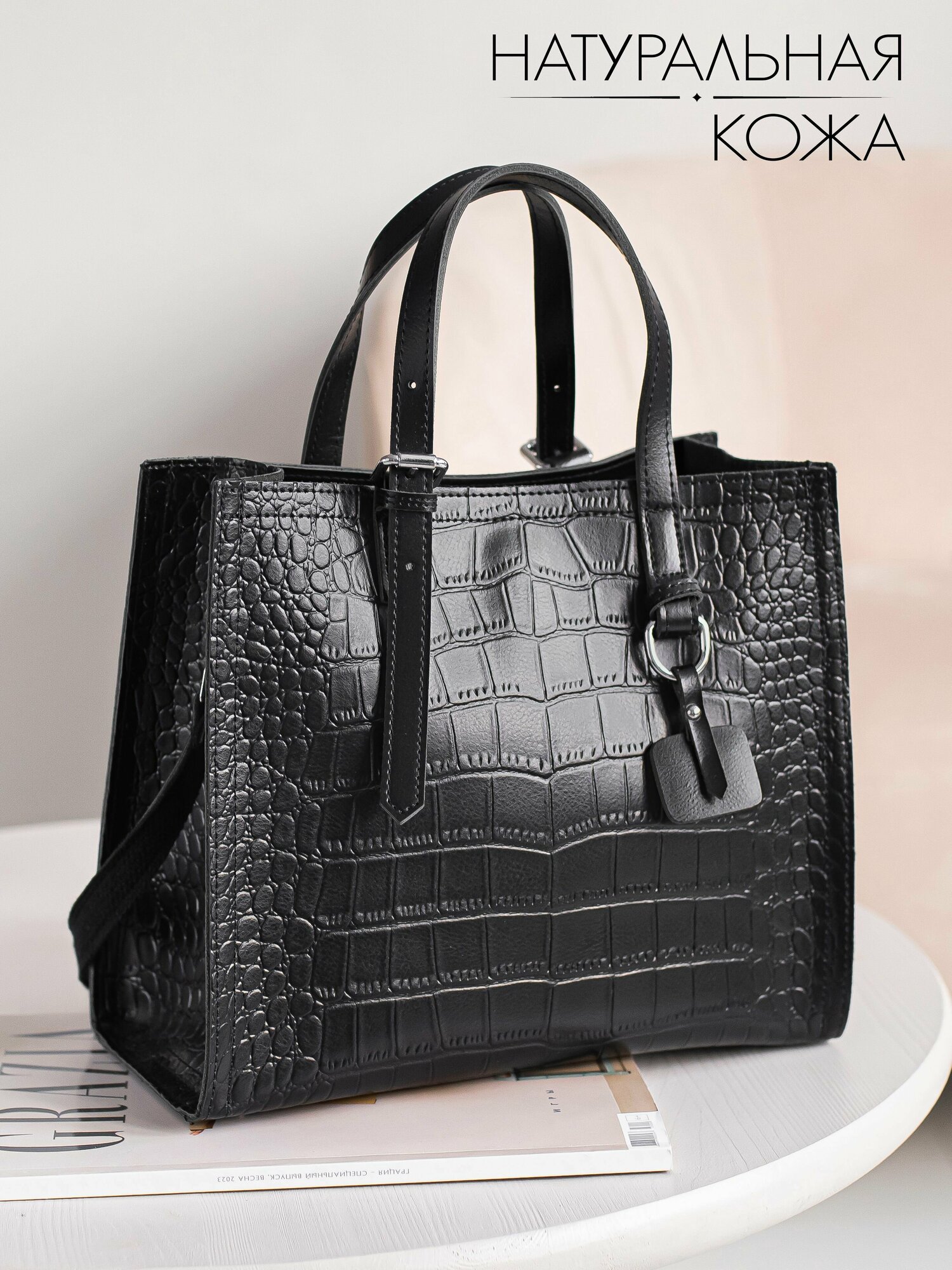 Отзывы на Сумка женская через плечо большая кожаная тоут натуральная прессованная кожа черная LILL'SIYA