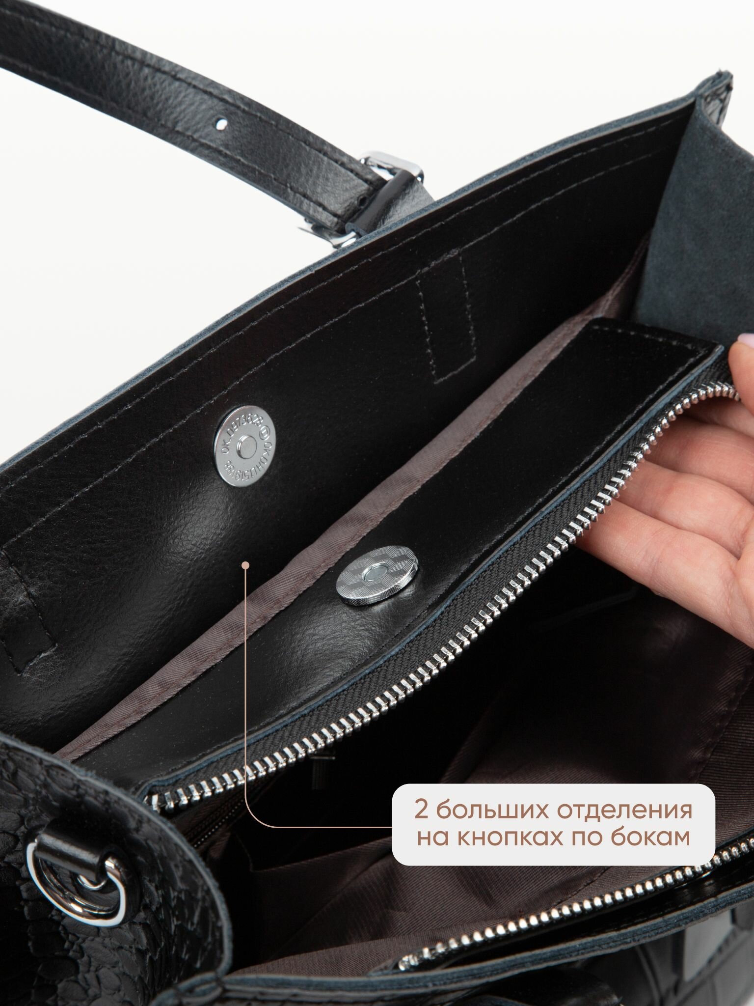 Сумка женская через плечо большая кожаная тоут натуральная прессованная кожа черная LILL'SIYA информация: