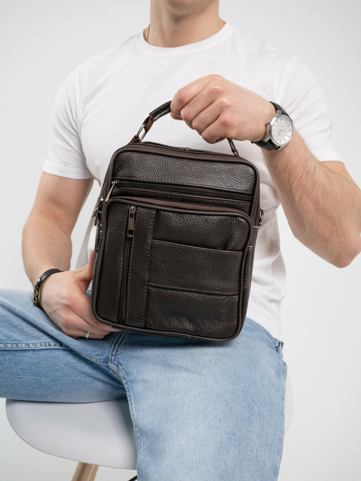 10 цен на Сумка мужская из натуральной кожи "Коричневая"