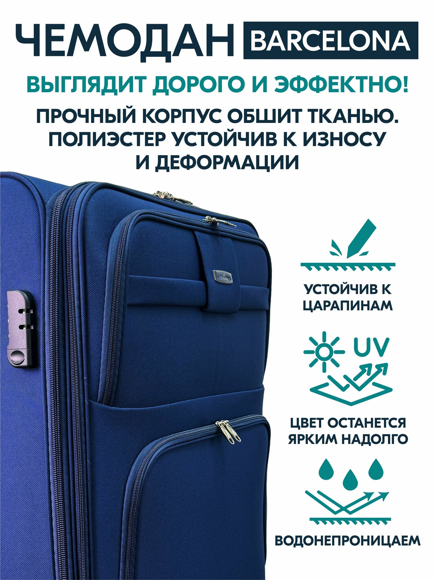 Чемодан L'Case Темно-Синий Barcelona M информация: