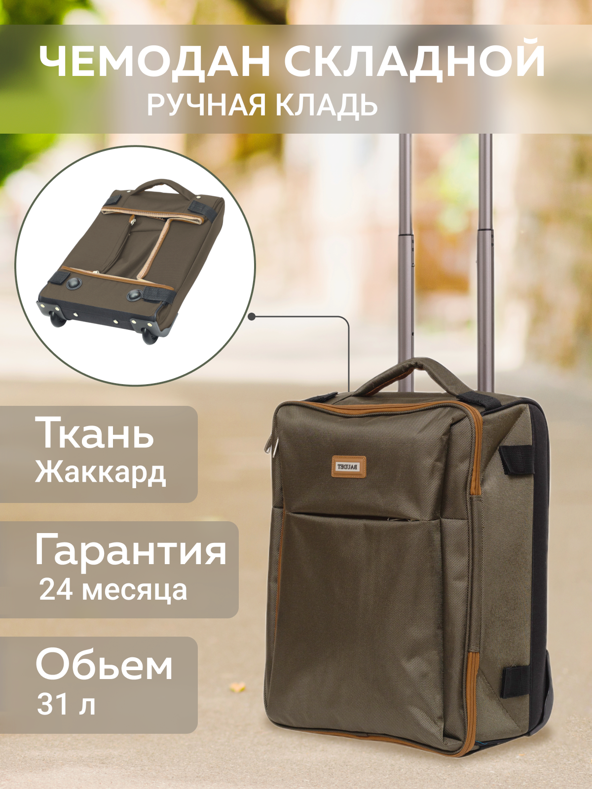 Чемодан складной Baudet 214, зеленый/черный, ручная кладь информация: