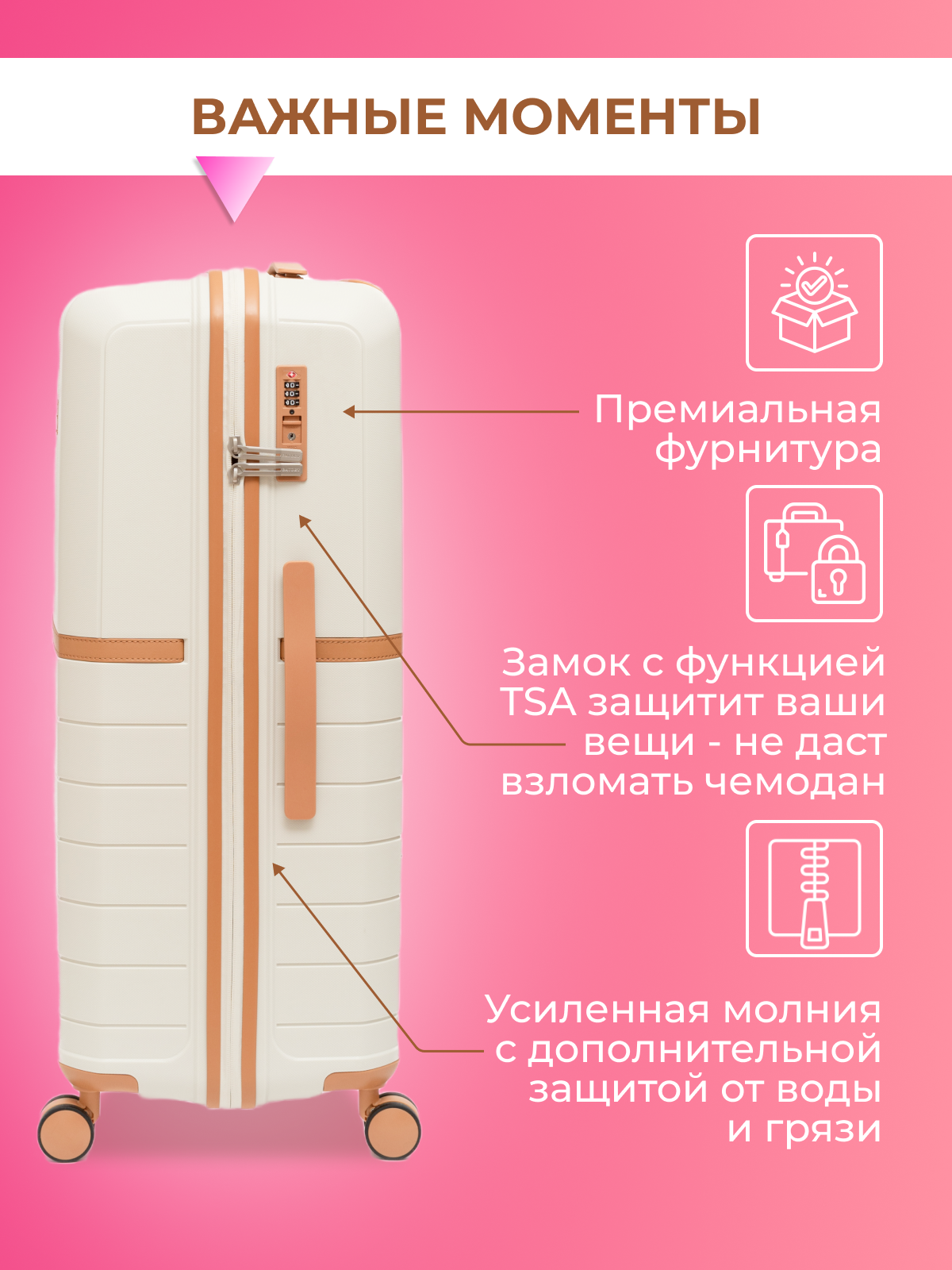 Чемодан на колесах BAUDET 822-L (белый/коричневый) полипропилен информация: