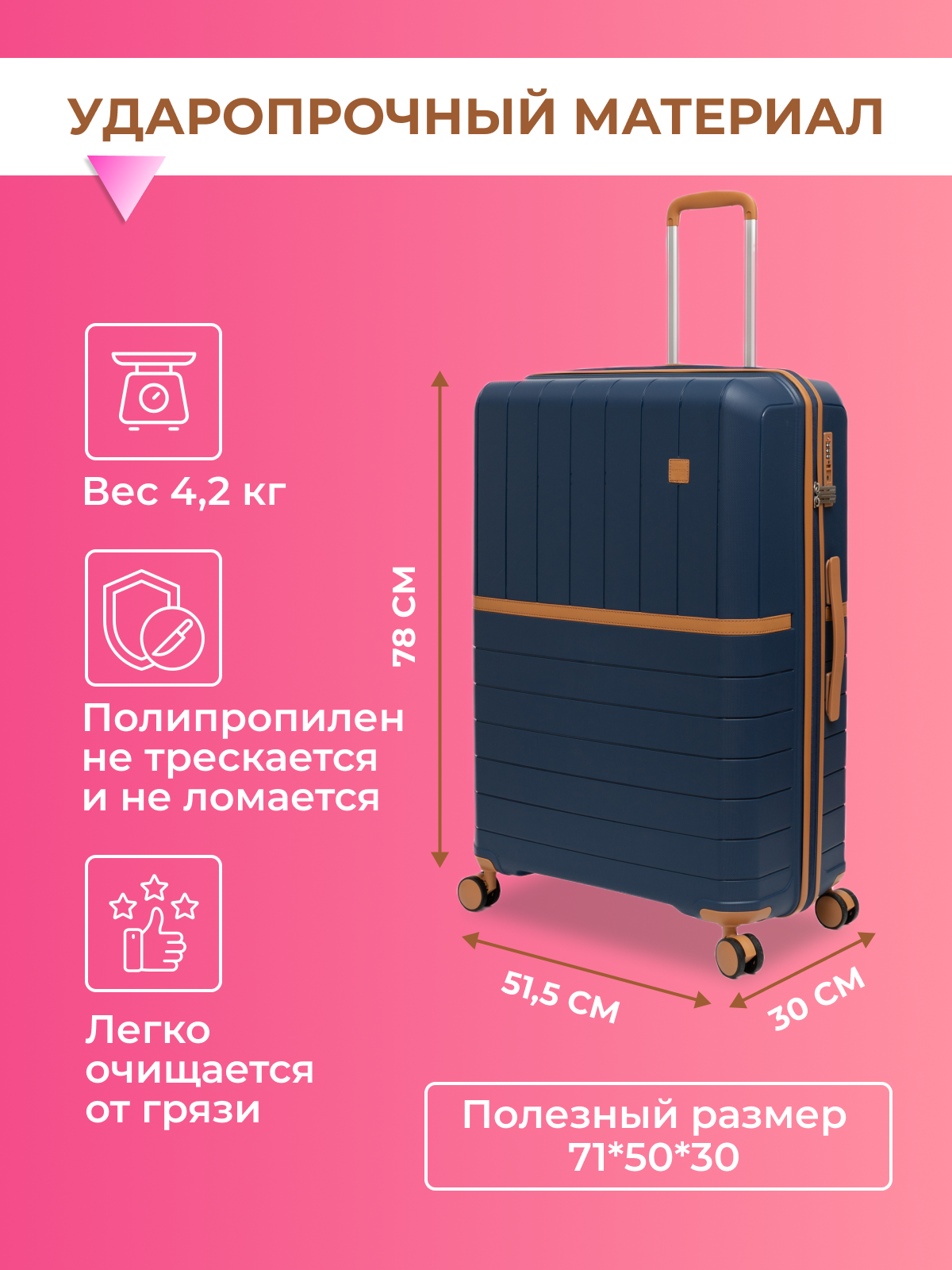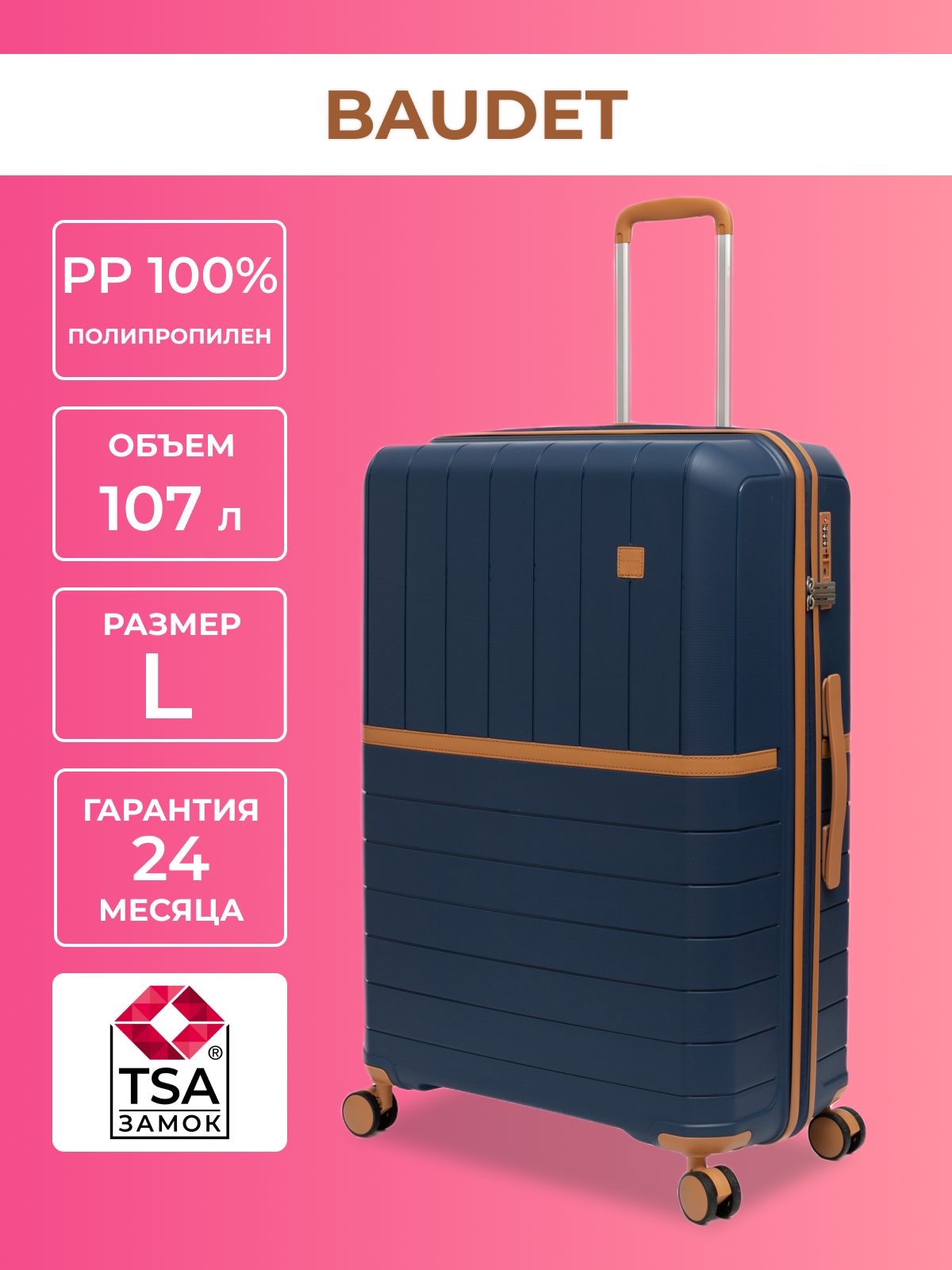 Чемодан на колесах BAUDET 822-L (синий/коричневый) полипропилен информация: