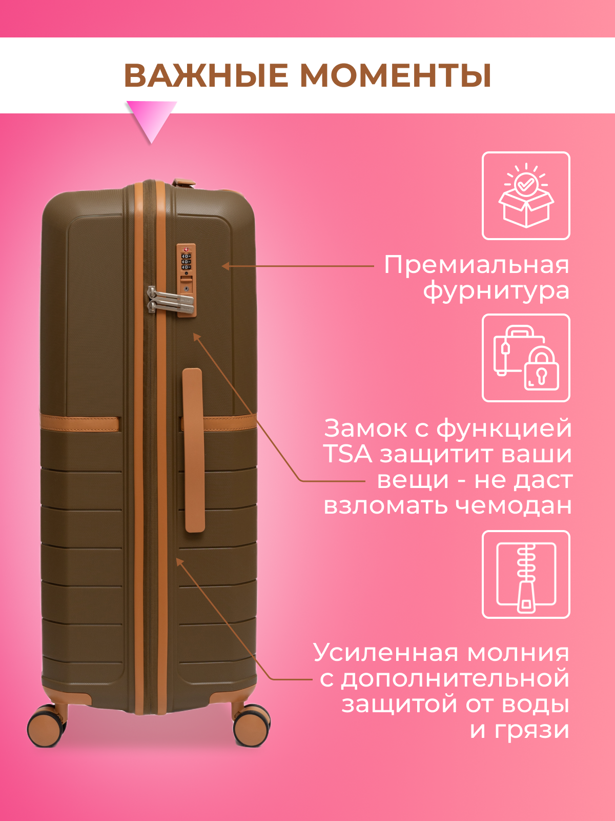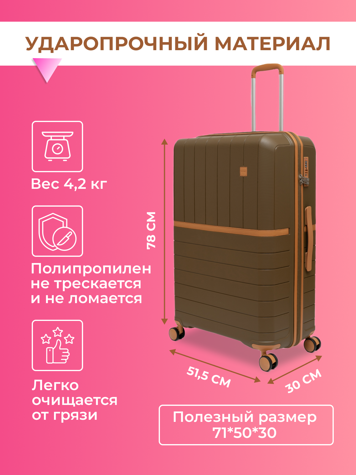 Чемодан на колесах BAUDET 822-L (коричневый/коричневый) полипропилен информация: