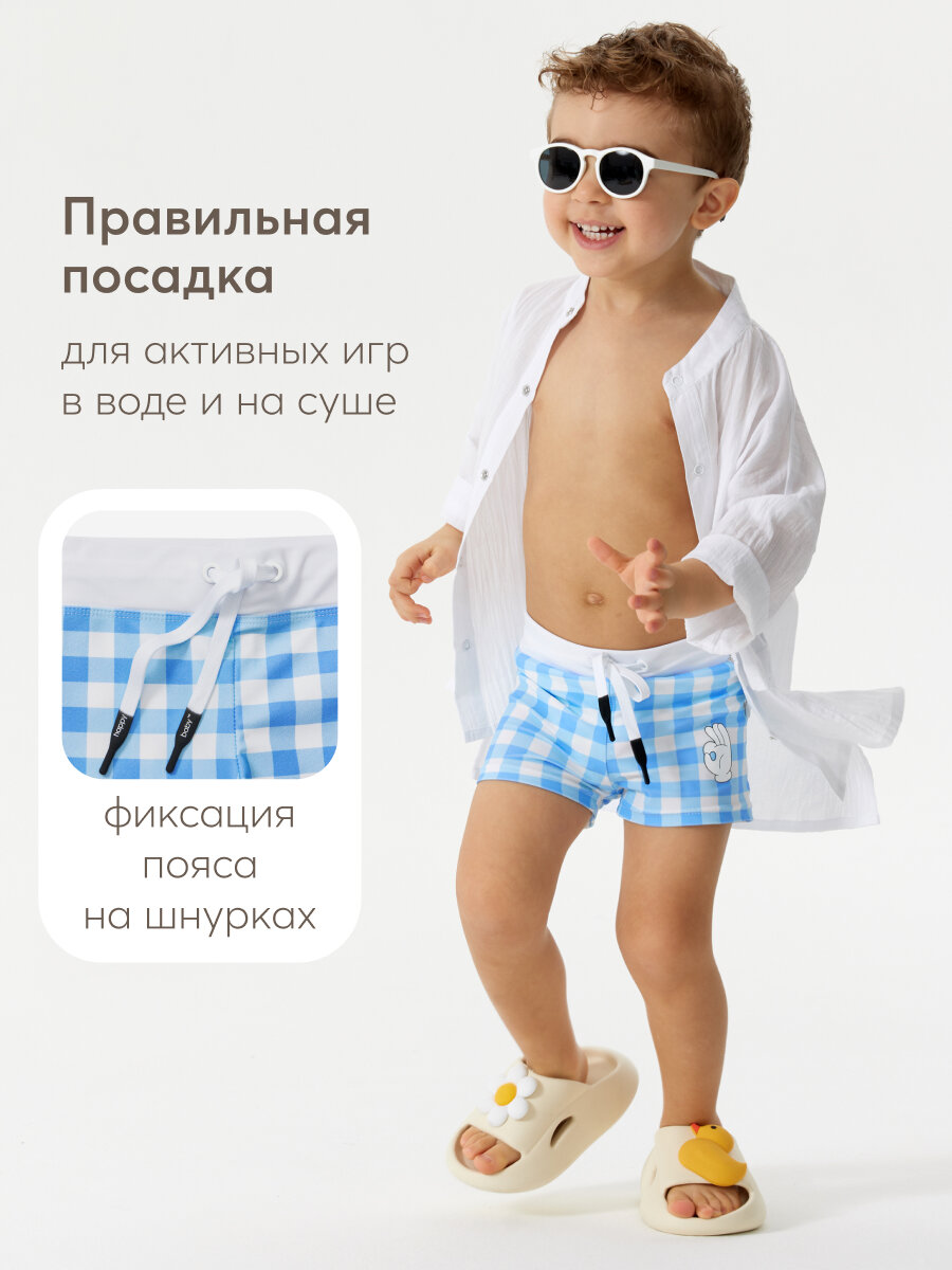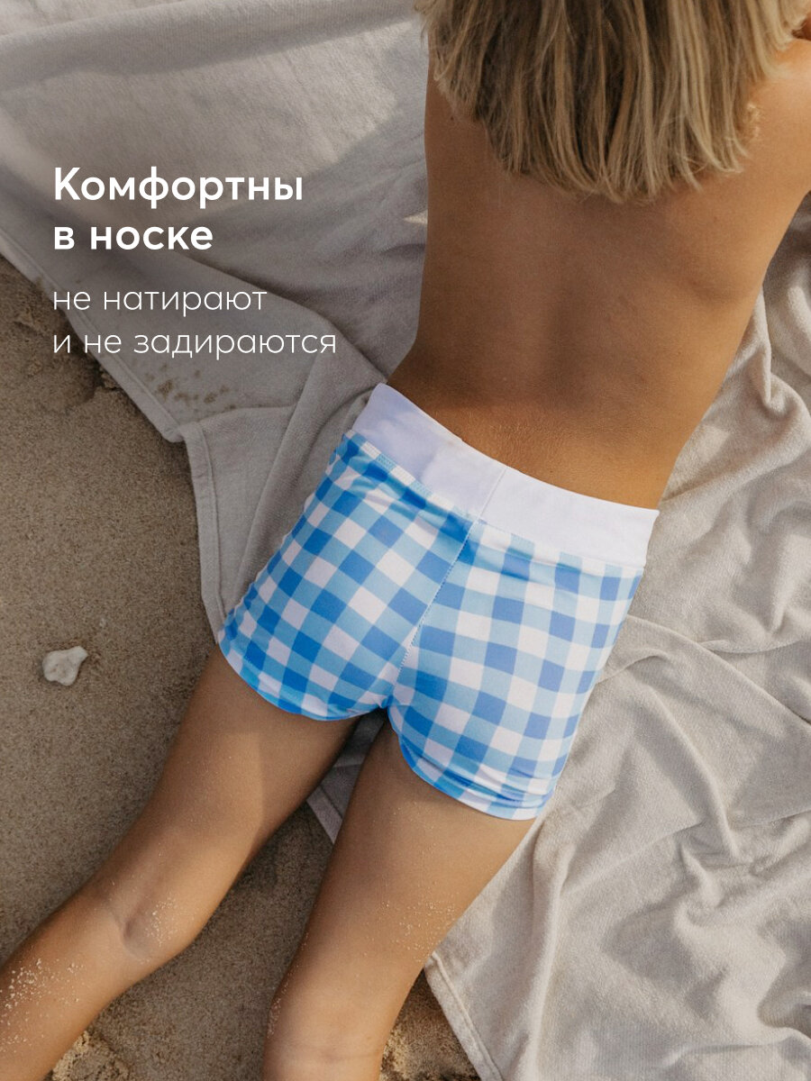 Отзывы на 50655, Плавки детские Happy Baby плавки для мальчика, шорты для плавания солнцезащитные UPF50+, голубые в клетку, размер 116-122