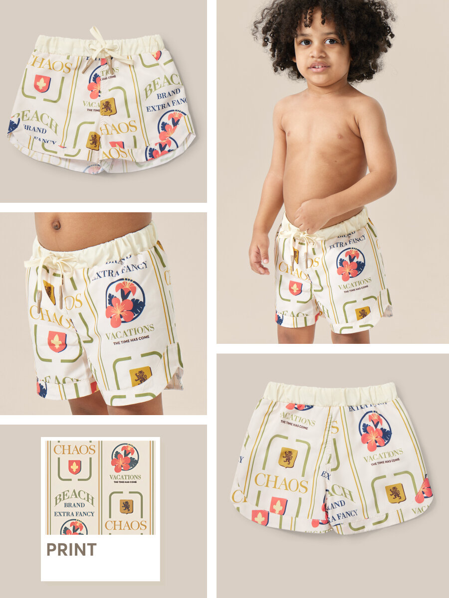 50647, Плавки детские Happy Baby для мальчика и девочки, шорты для плавания, для пляжа, для бассейна, бежевые с орнаментами, размер 116-122 информация: