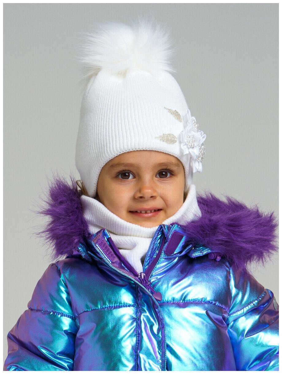 10 цен на Комплект для девочки: шапка, снуд PlayToday, размер 48, белый