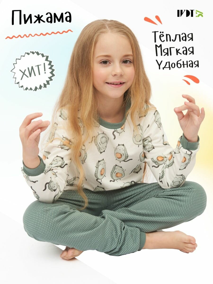 Отзывы на Пижама с авокадо детская утепленная на девочку для сна и отдыха размер 32 , рост 116-122 см.