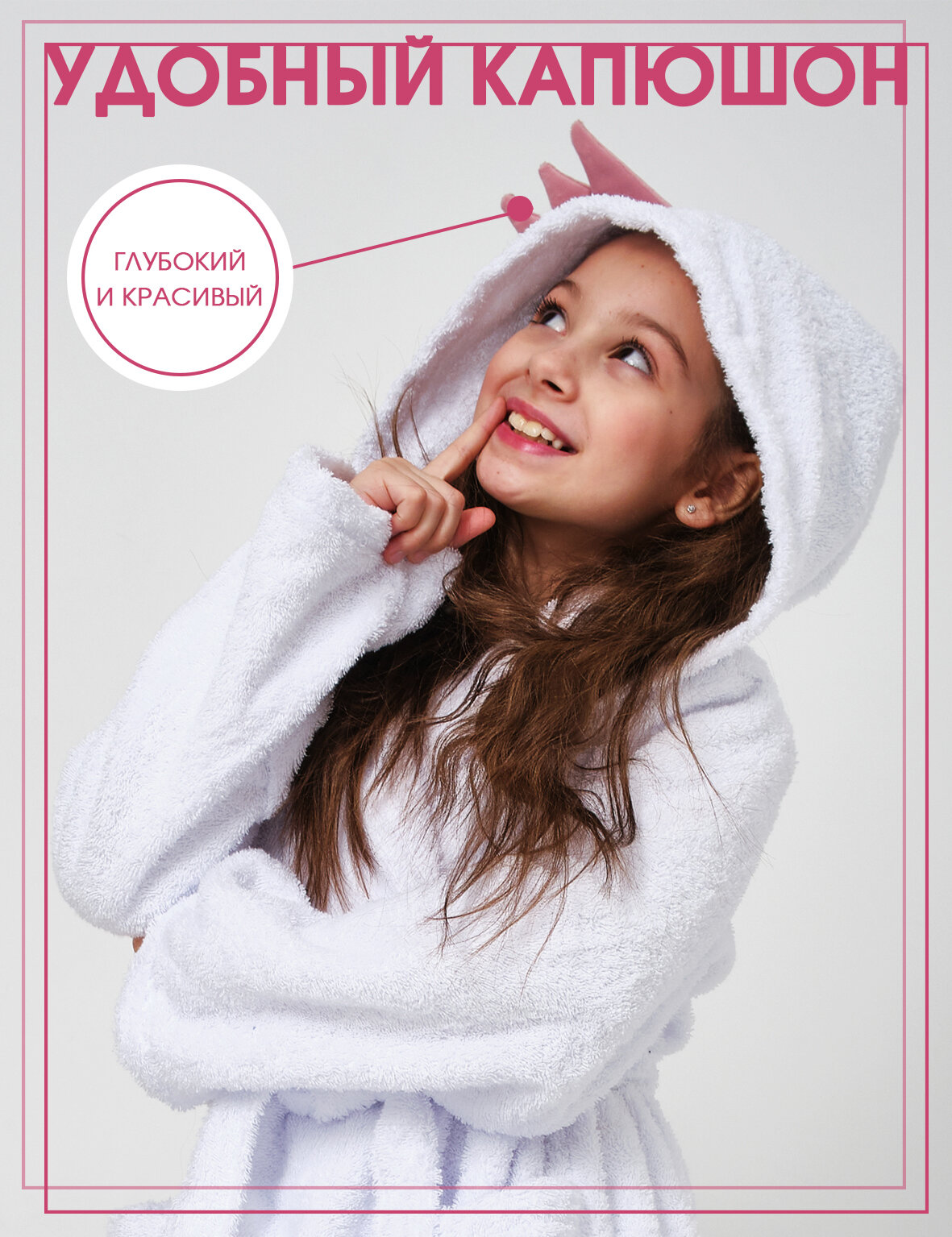 Халат махровый для девочки c капюшоном Winkiki "Принцесса" WH111 Белый 128-134 размер информация: