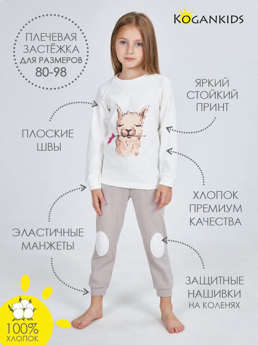 Пижама для девочки,KOGANKIDS,молочный, серый, 104 / 4 года информация: