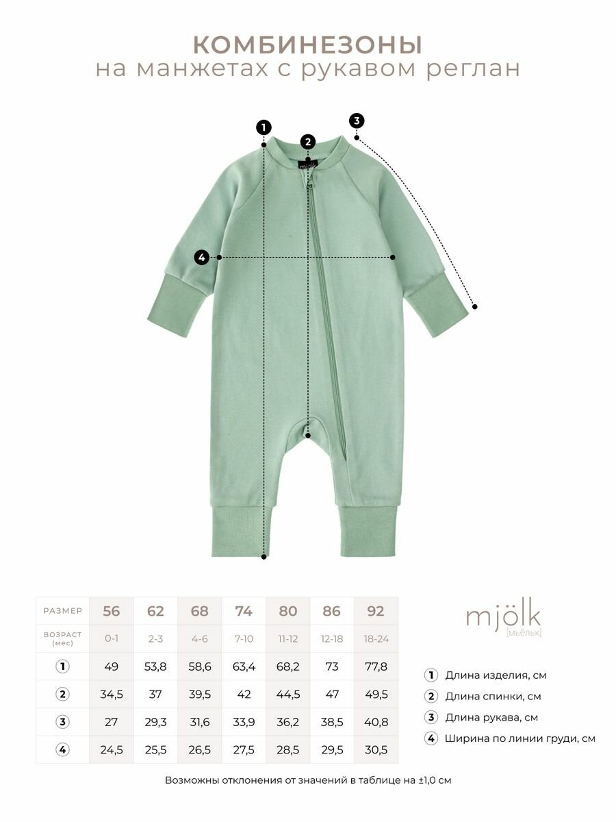 Комбинезон на манжетах Mjolk Sleep and Play Magic Mint, с рукавом реглан (56)
