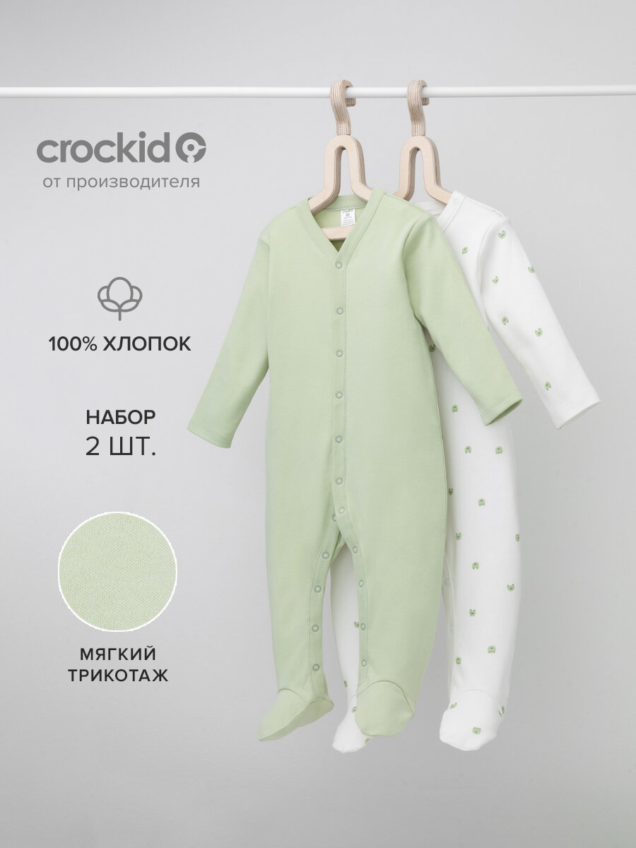 Комплект комбинезонов для мальчика из натурального хлопка, Crockid К 6025-2уп/фисташковое безе,мини лягушата р 48/74 1 670 ₽