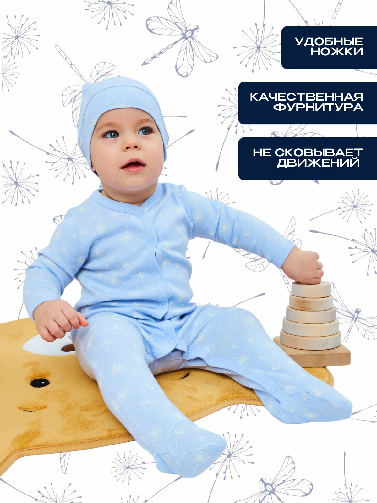 Отзывы на Комплект слип комбинезонов для новорожденных 3 штуки голубой 56