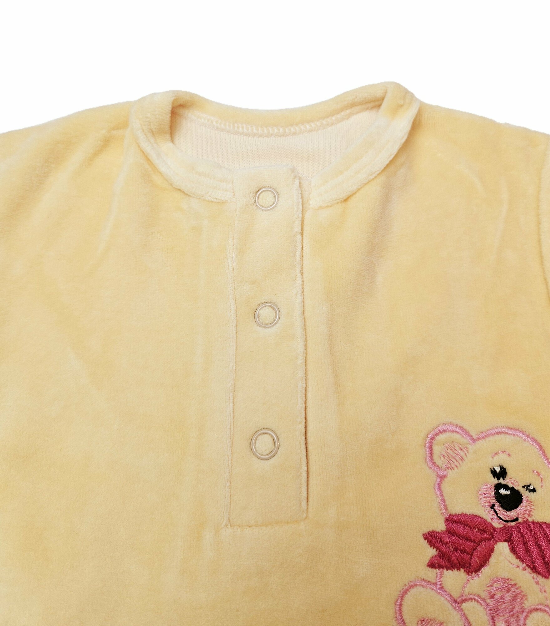 Комбинезон велюровый с вышивкой, Сказка, жёлтый, на шаговом шве кнопки, размер 62-40 385 ₽