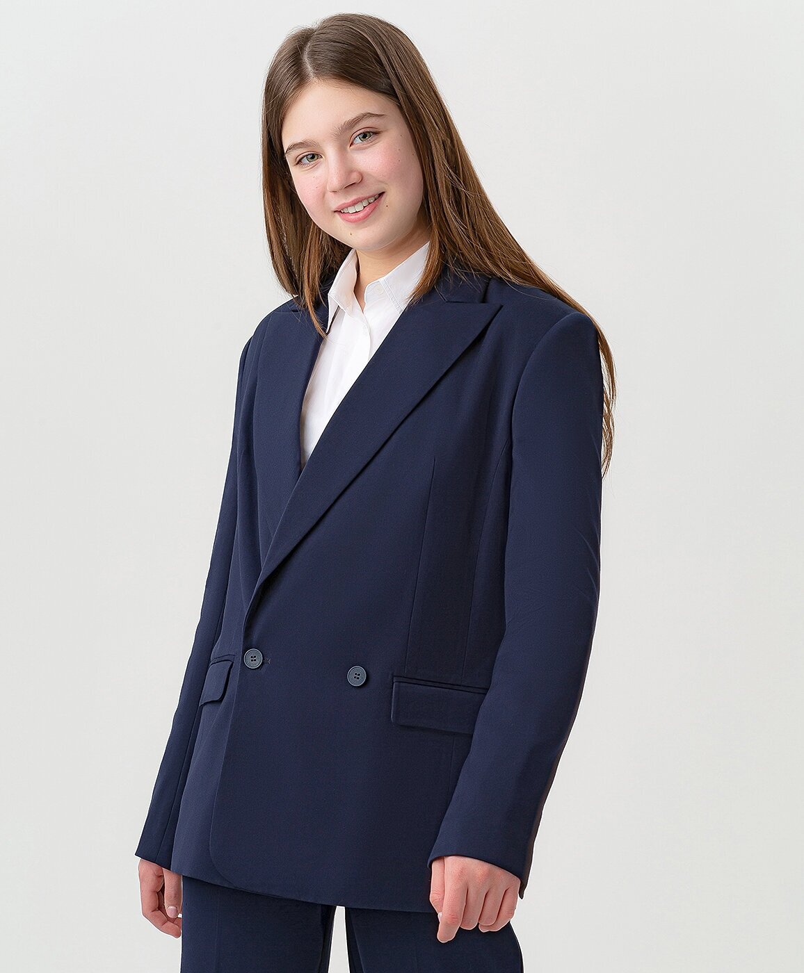 10 цен на Пиджак на пуговицах темно-синий Button Blue, для девочек, размер 164, мод. 223BBGTS48011000