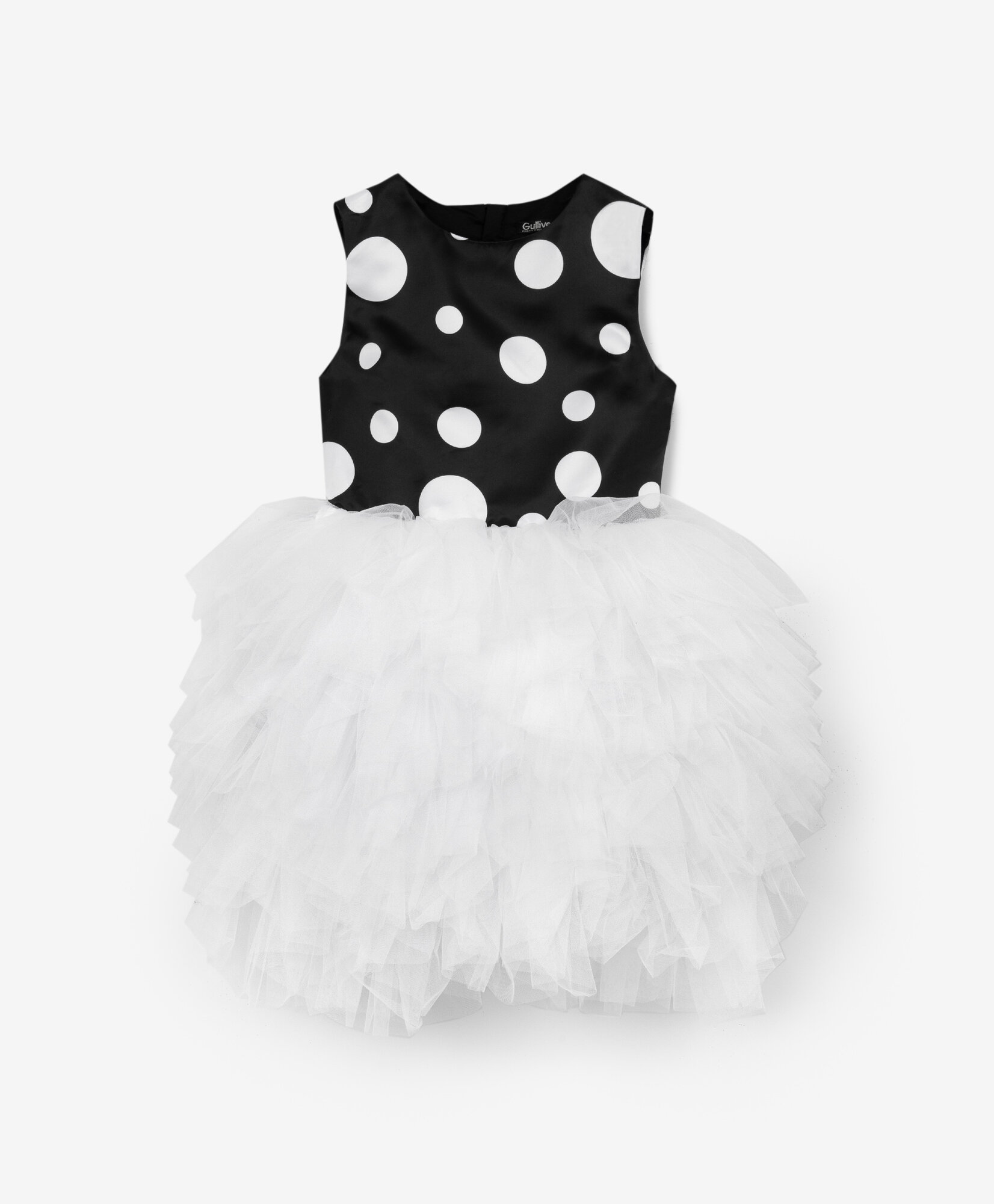 10 цен на Платье в горох с пышной юбкой из сетки черно-белое для девочки Gulliver, р.128, мод.224GPGC2501
