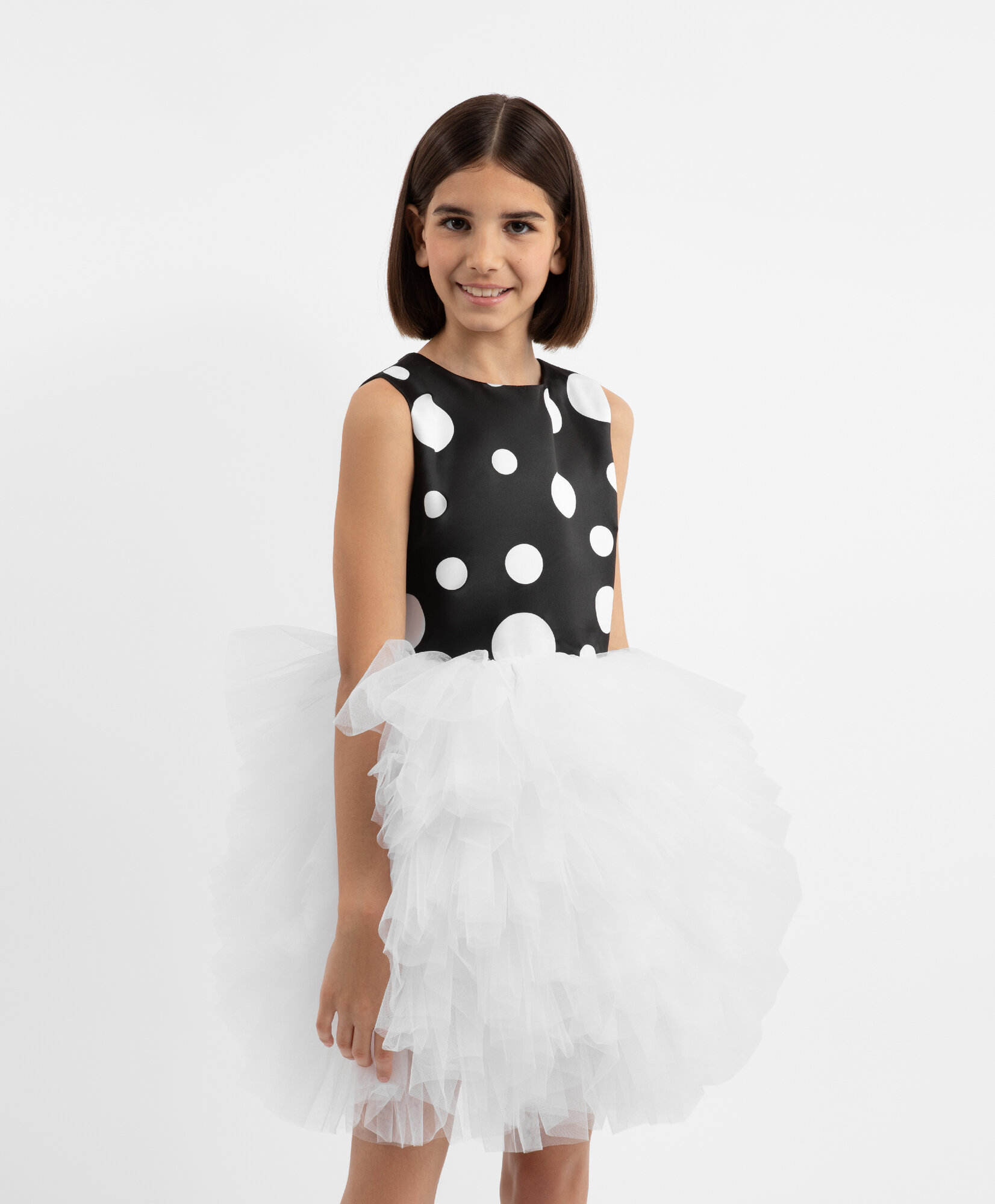 Платье в горох с пышной юбкой из сетки черно-белое для девочки Gulliver, р.128, мод.224GPGC2501 информация: