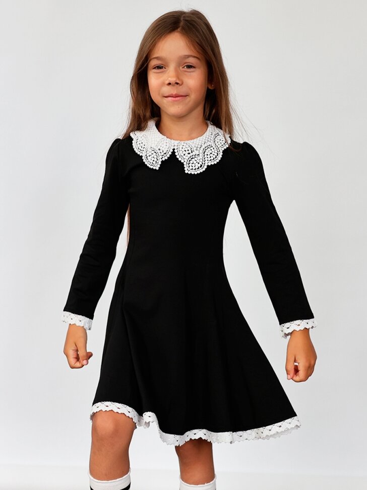 | Дополнительная информация | Платье для девочки школьное БУШОН SK35, цвет черный. Состав материала: Трикотаж 92% хлопок, 8% эластан, плотность 180 г/м интерлок |