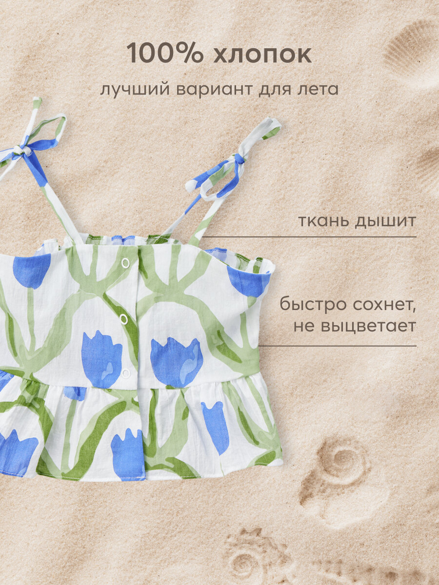 Отзывы на 88157, Топ для девочки Happy Baby, топ летний хлопковый, на завязках, одежда для девочки, синий с цветами, размер 122-128