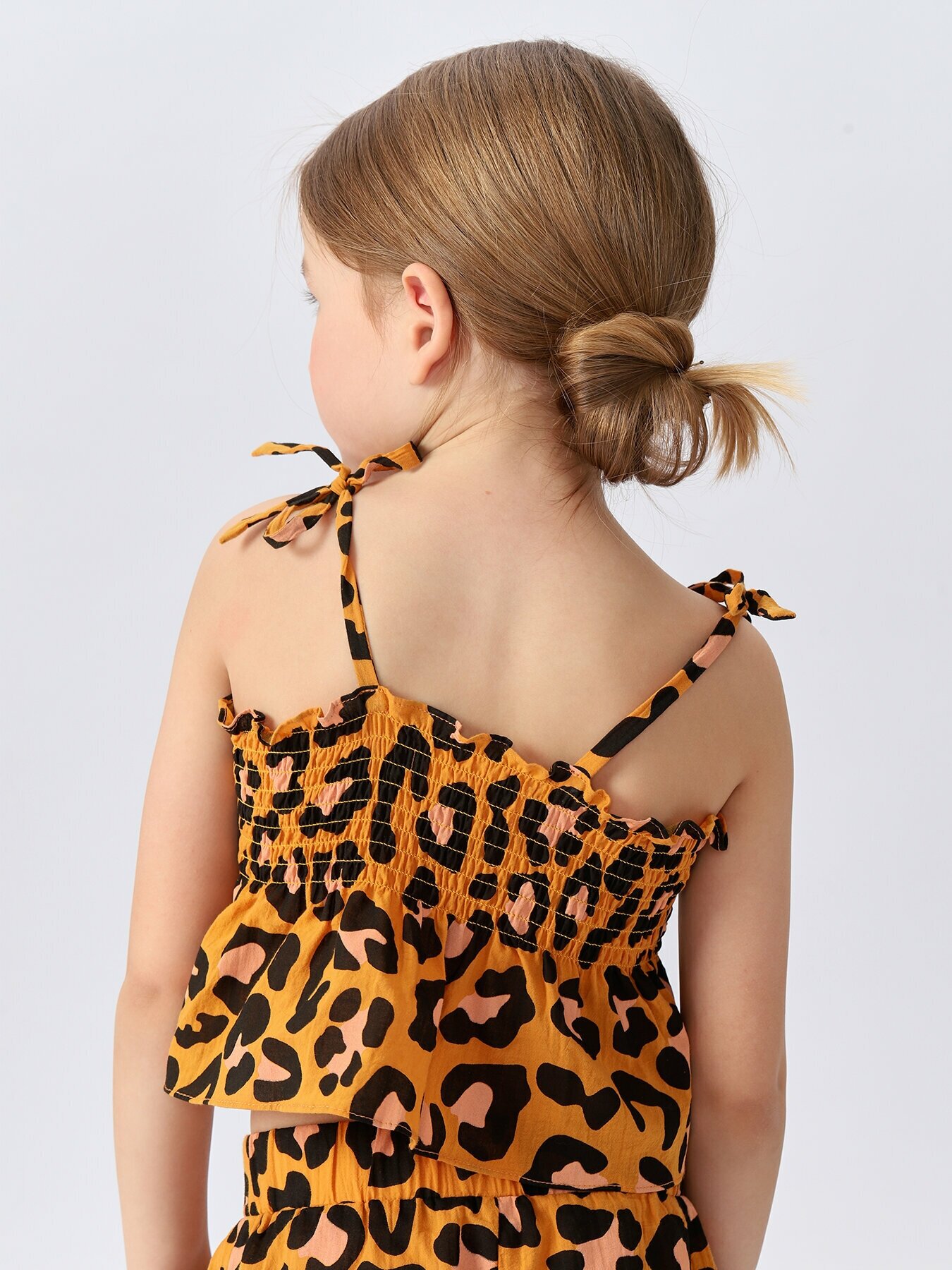 88157, Топ для девочки Happy Baby хлопковый топ детский летний, на завязках, одежда для девочки, леопардовый, размер 110-116