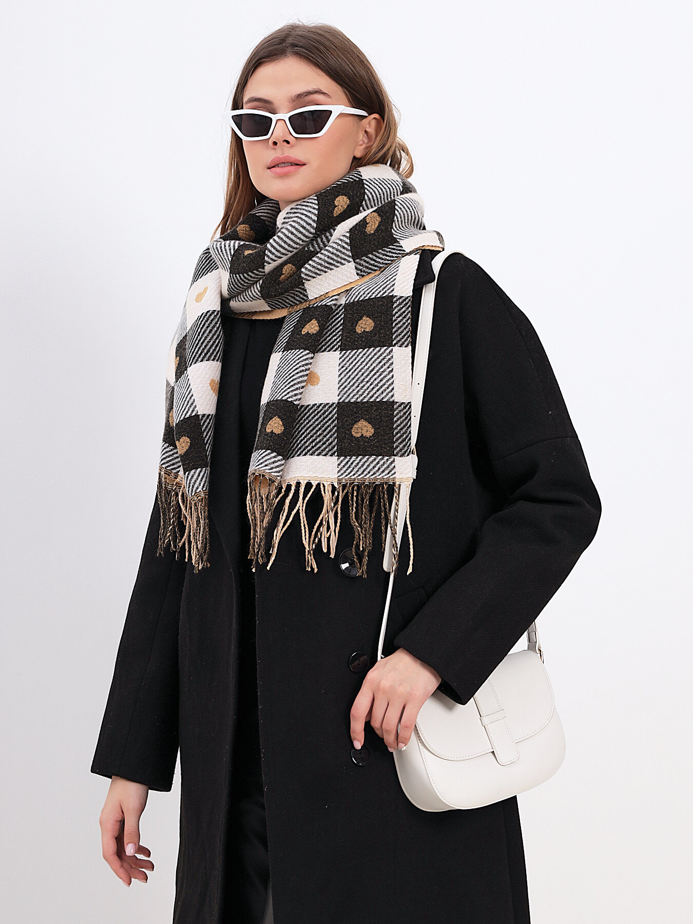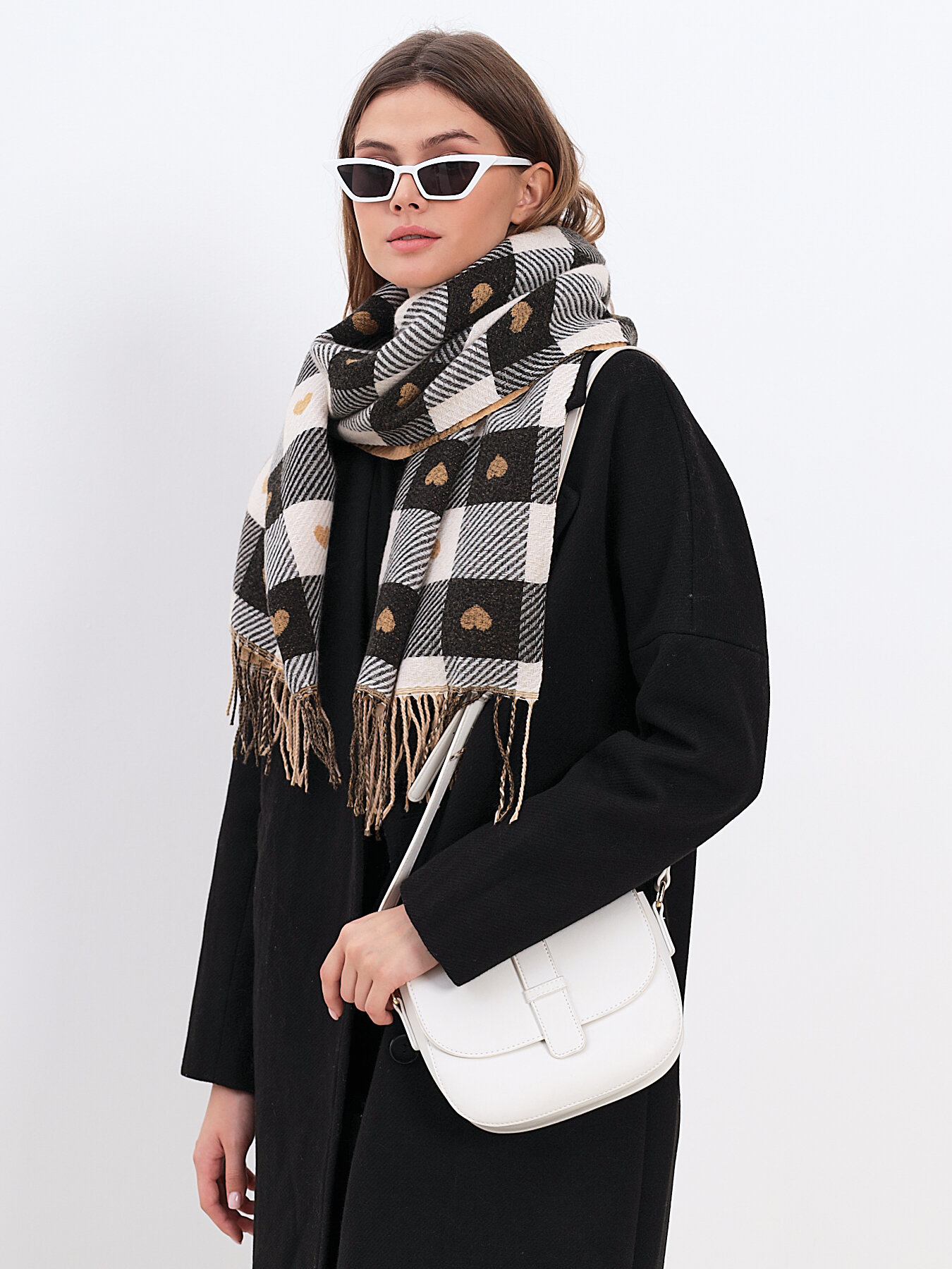 Шарф зимний теплый и мягкий, женский шарф со сердечками / черно-белый информация: