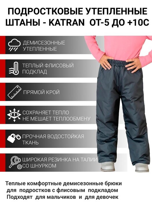 Отзывы на Детские демисезонные теплые брюки штаны на флисе для мальчика KATRAN Young (дюспо, графит), Размер: 140-146
