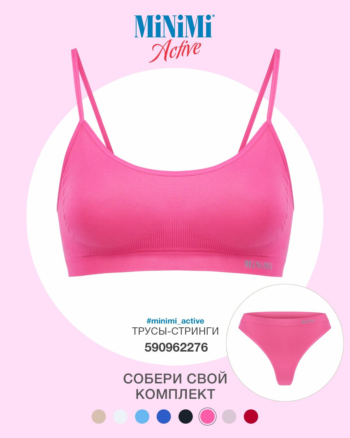 10 цен на Топ бра женский Minimi Active MA121 Rosa 46/48 (M/L)