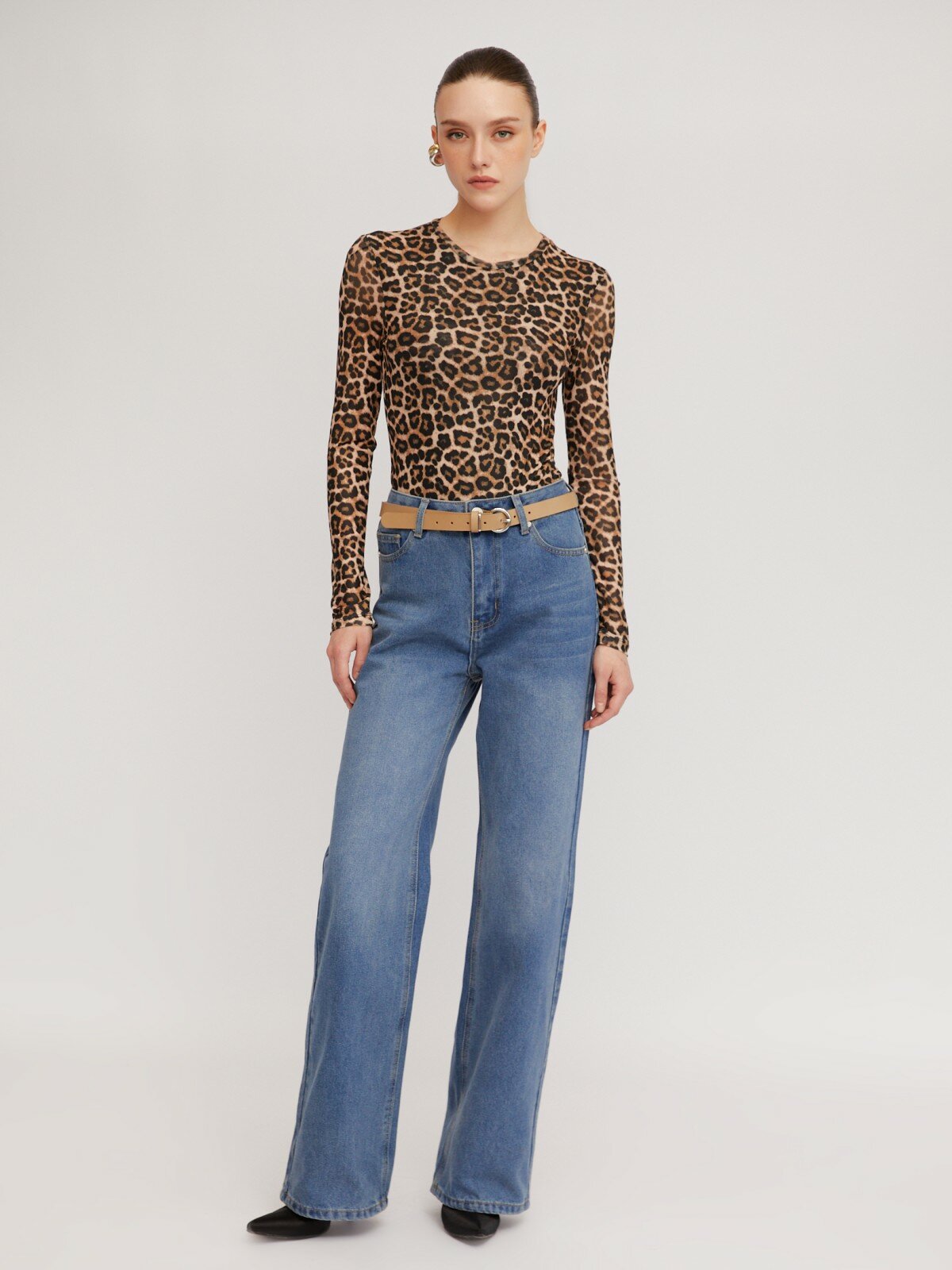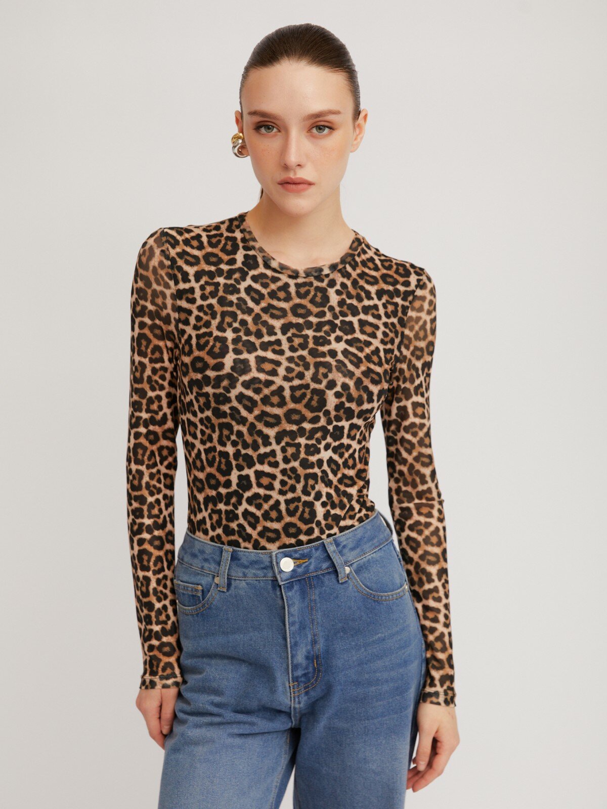 Лонгслив-боди из полупрозрачной сетки с принтом, цвет Бежевый, размер S 024313159121 1 359 ₽