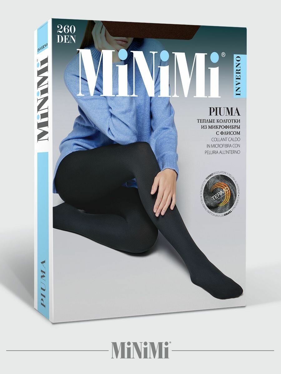 Колготки женские гладкие снаружи с флисом внутри MiNiMi Piuma 260 den, размер 2=S с ластовицей, цвет Moka=Тёмно-коричневый 835 ₽