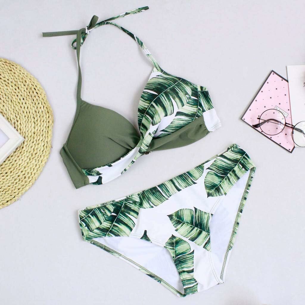 10 цен на Женский зелено-белый раздельный купальник с растительным принтом