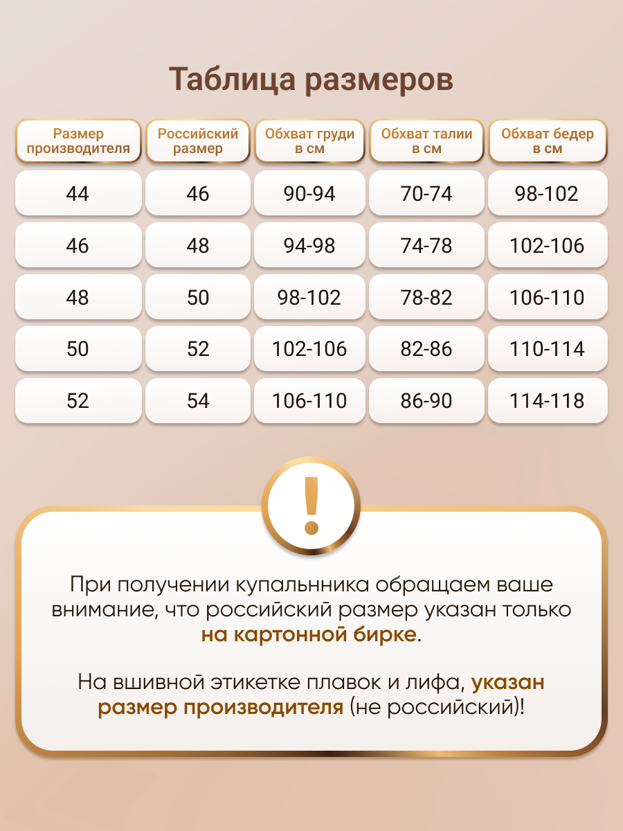 | Дополнительная информация | Драпировка на лифе акцентирует внимание на декольте, визуально округляя грудь, делая ее более пышной, а складочки на животе корректирует фигуру. Рекомендации по уходу: Ручная стирка 30 градусов с гелем бережный уход или защита цвета. Купальник прополаскать сразу после водоема, не оставлять надолго мокрым в пакете (морская соль негативно влияет на ткань). |