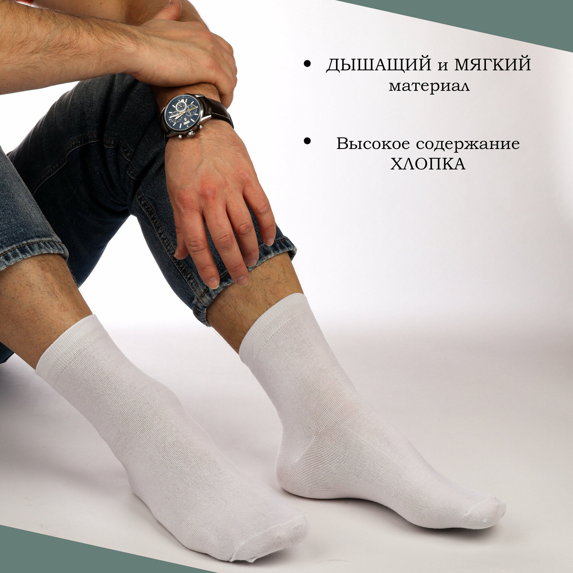 10 цен на Мужские белые классические носки из хлопка. Набор 5 пар. Размер 41-47. Высокие, без шва