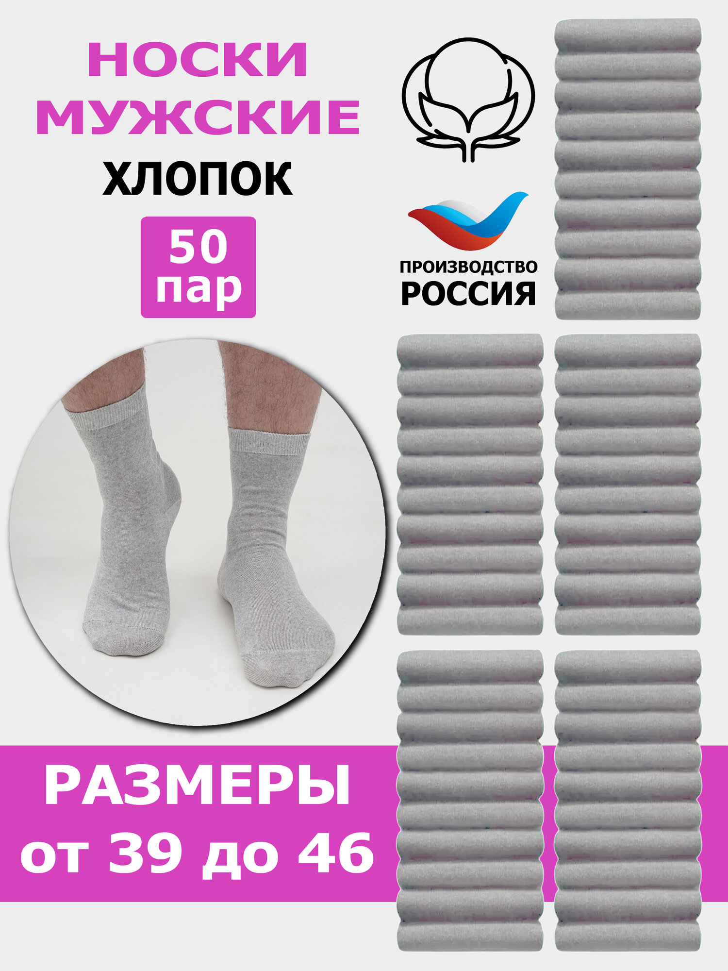 Отзывы на Д-5н Комплект мужских носков караван, хлопок - 50 пар 25 Светло-серый