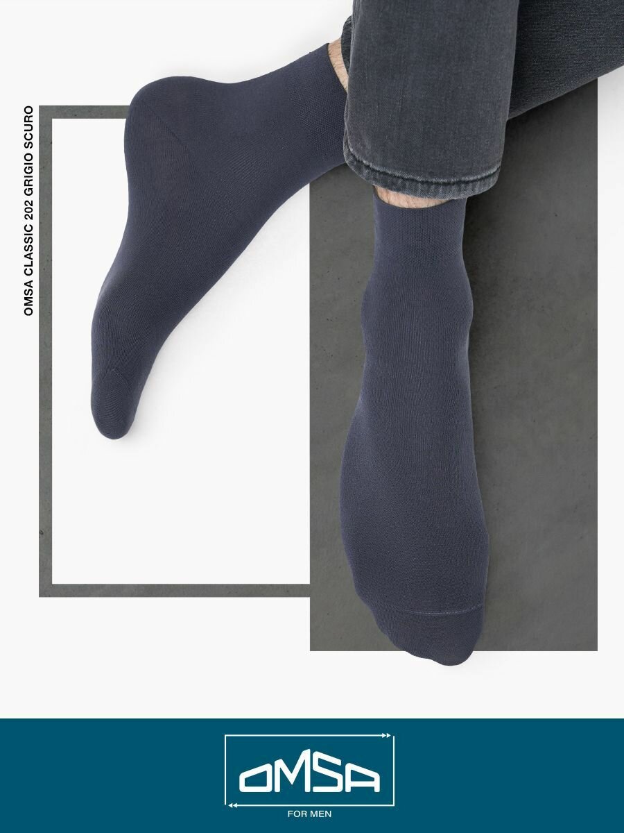 Носки мужские OMSA CLASSIC 202, высокие, комплект 3 шт, Цвет Grigio Scuro, Размер 39-41 информация: