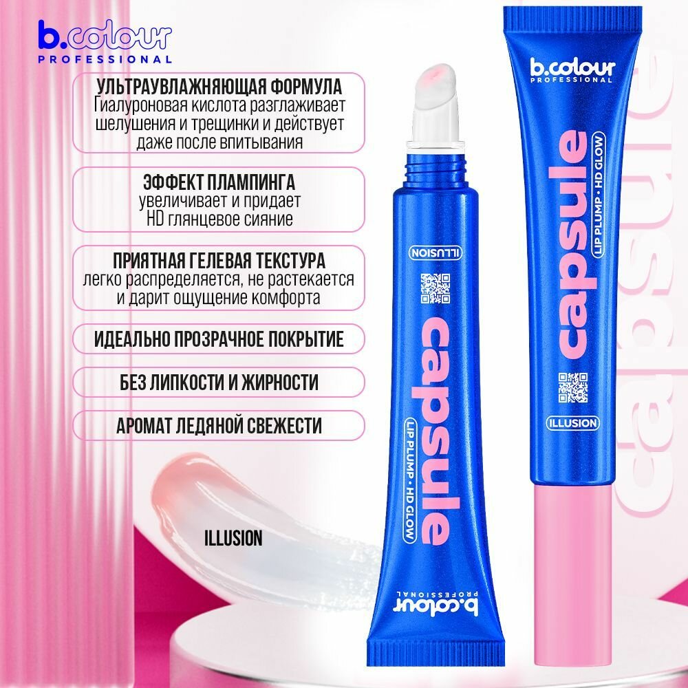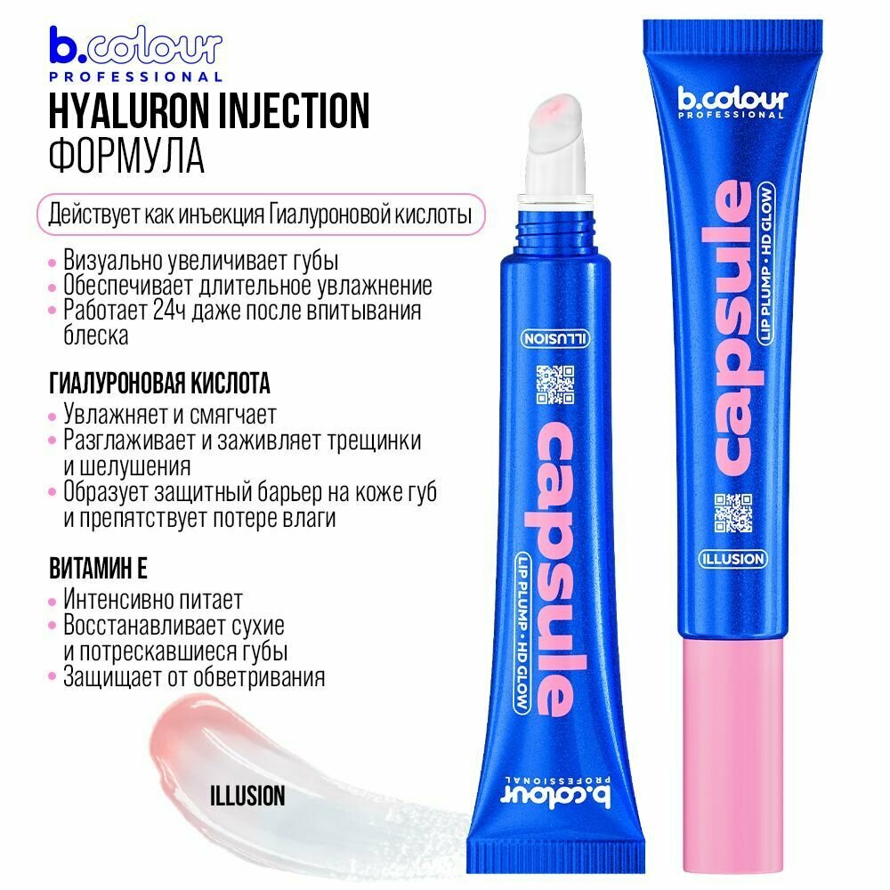 10 цен на Блеск для губ увеличивающий объем B.COLOUR PROFESSIONAL CAPSULE бальзам прозрачный с гиалуроновой кислотой ILLUSION 2в1