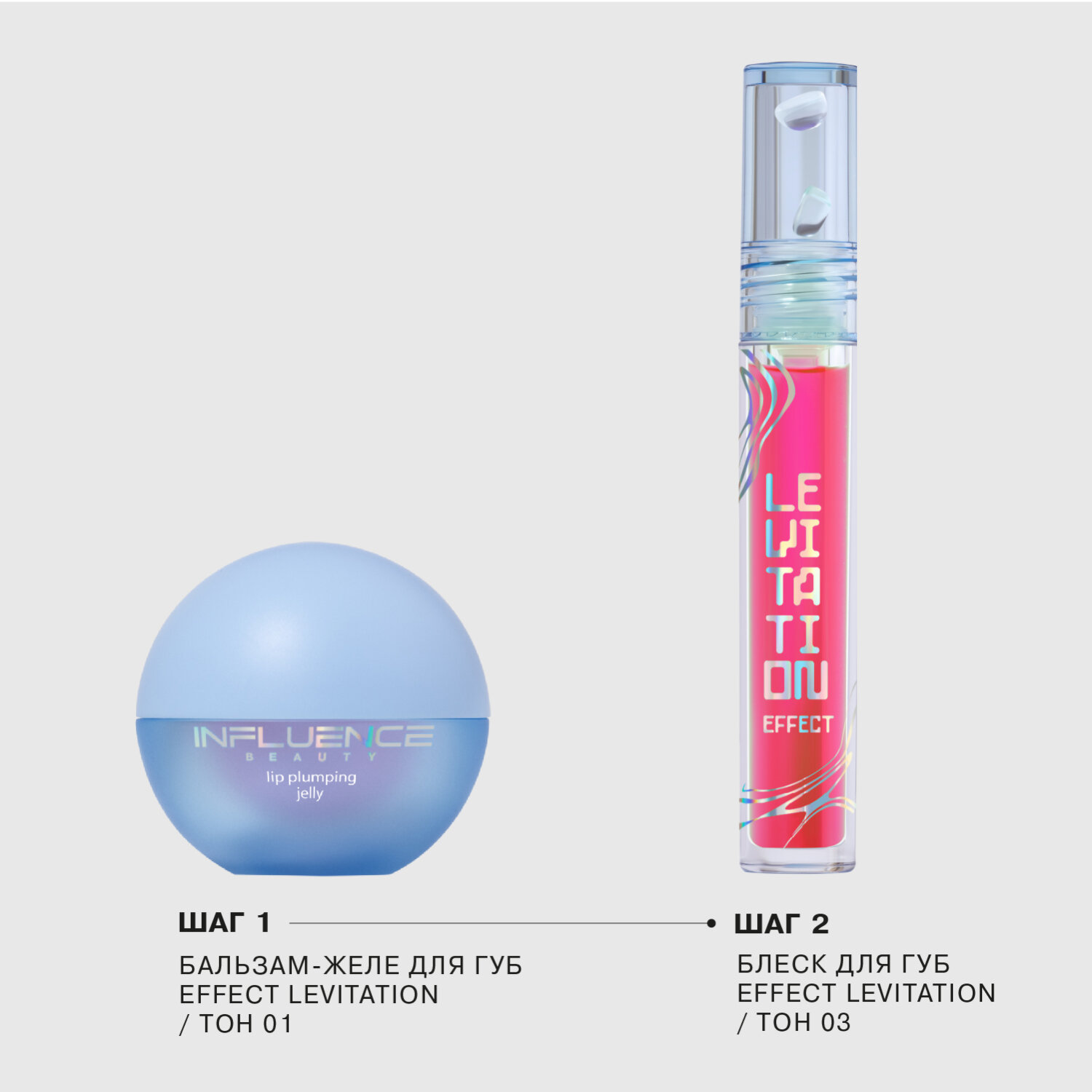 Блеск для губ INFLUENCE BEAUTY Effect Levitation, сияющий, увлажнение и объем губ тон 02/прозрачный, 3 мл.
