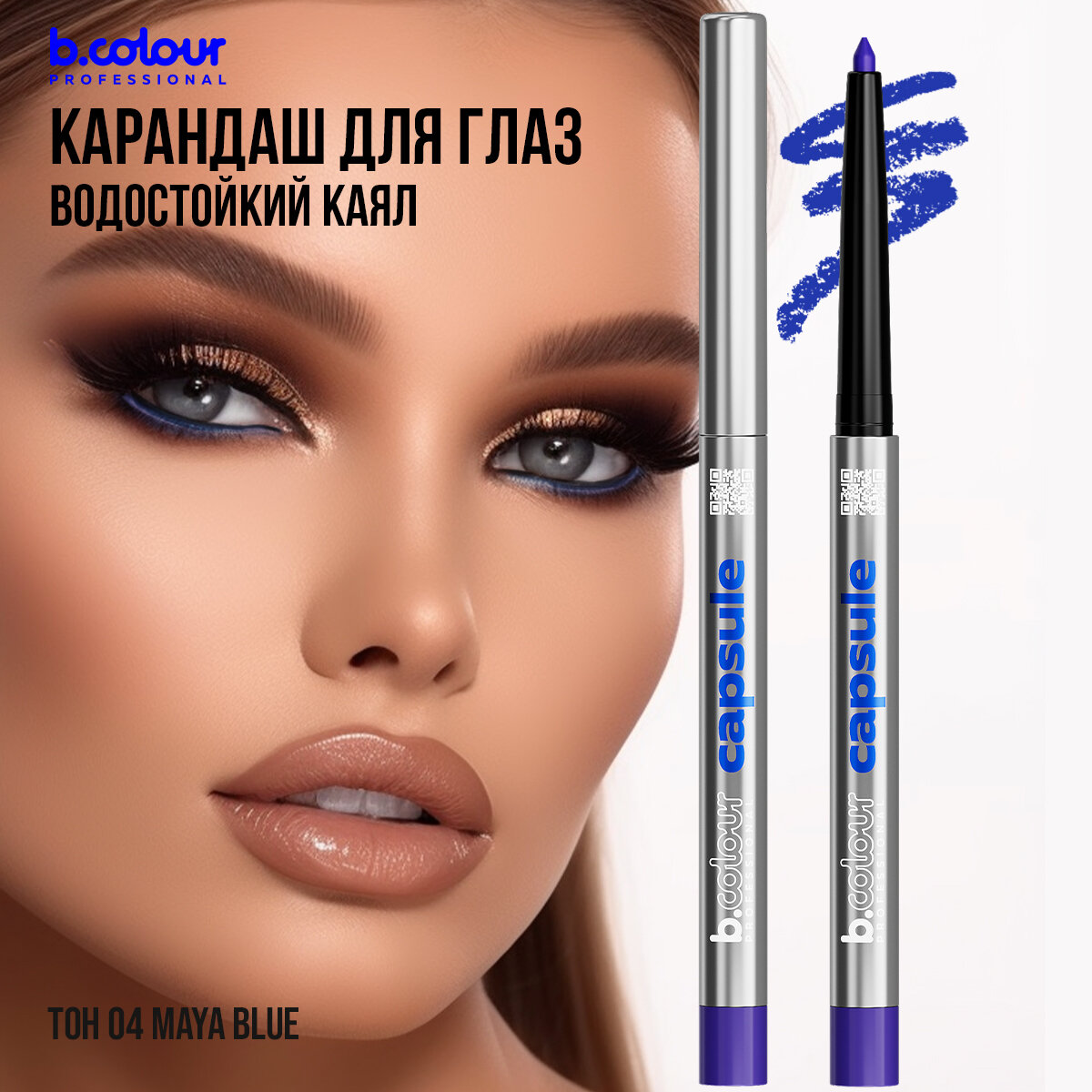 Карандаш для глаз B.COLOUR PROFESSIONAL CAPSULE синий каял для слизистой гелевый водостойкий 04 Maya blue информация: