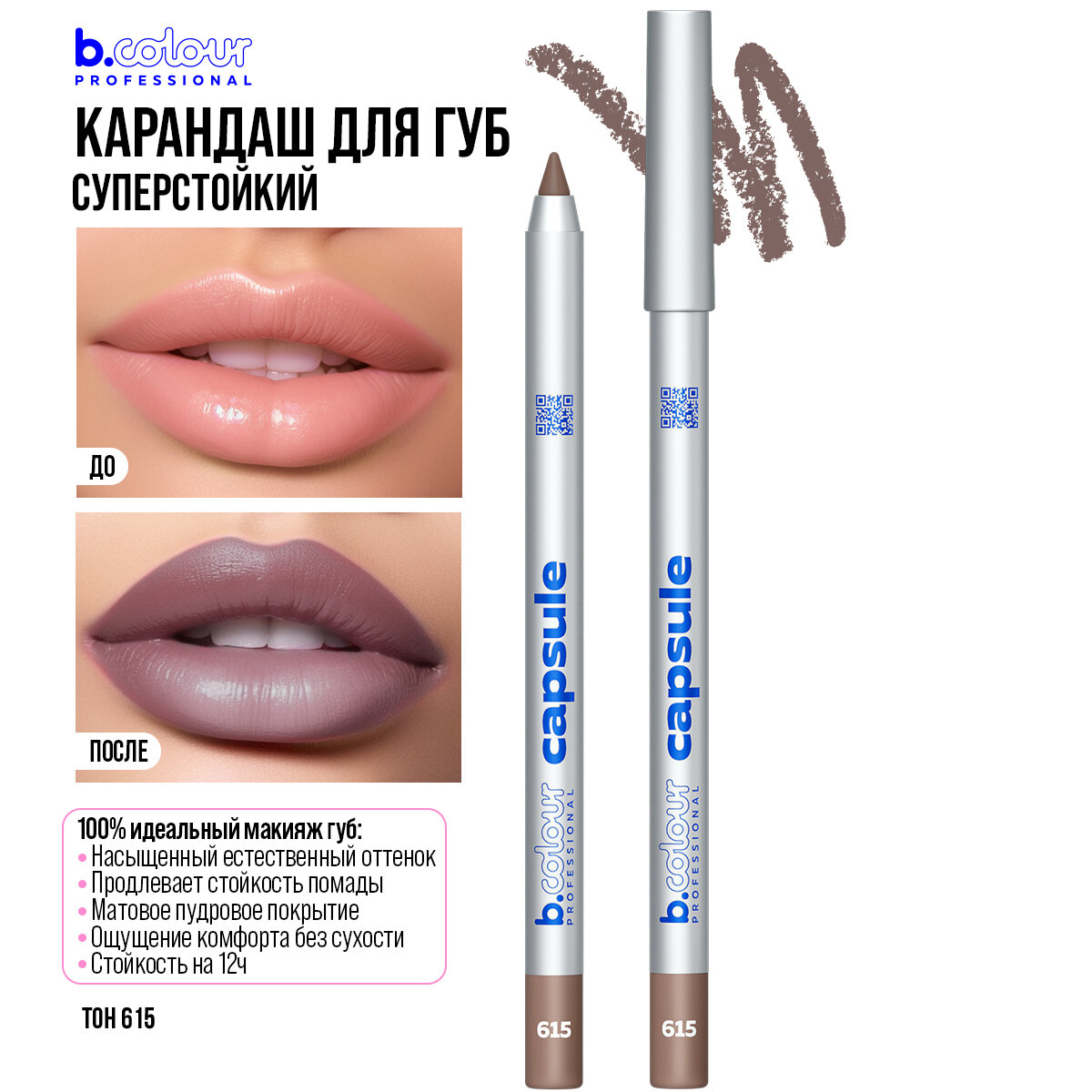Карандаш для губ B.COLOUR PROFESSIONAL CAPSULE коричневый нюдовый стойкий матовый, 615 информация: