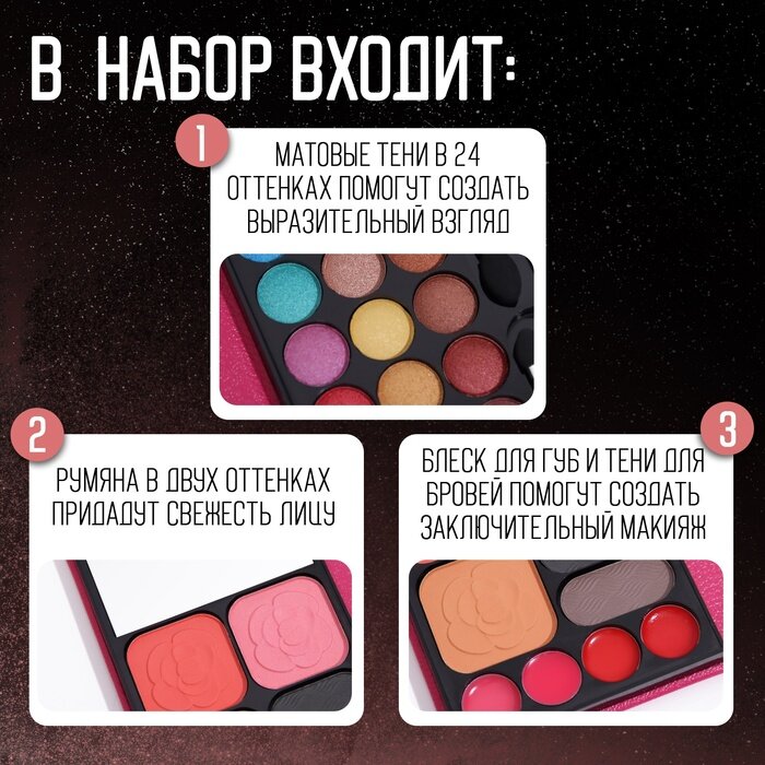 10 цен на Набор декоративной косметики: тени для век, тени для бровей, блеск для губ, румяна, зеркало