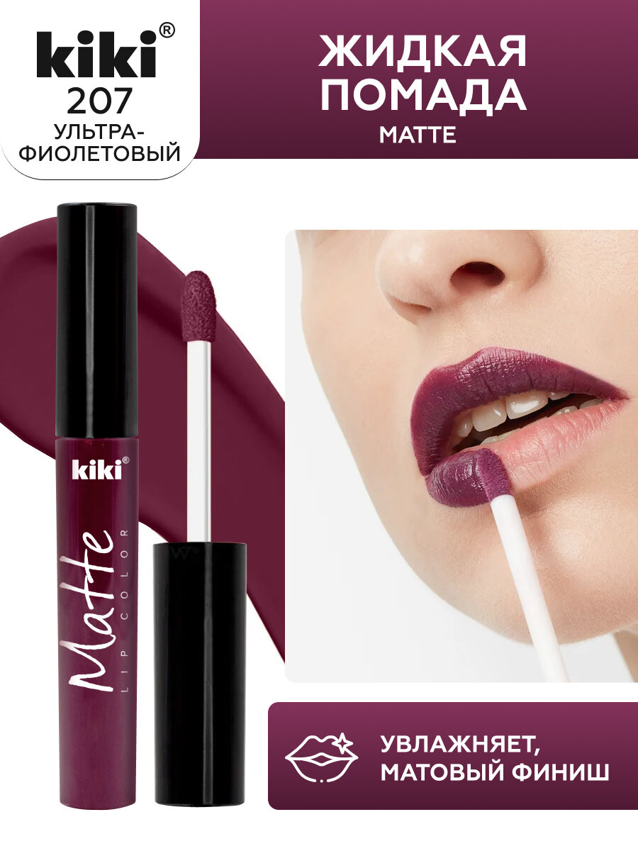 10 цен на Жидкая матовая помада для губ KIKI Matte lip 207, стойкая, оттенок ультра-фиолетовый