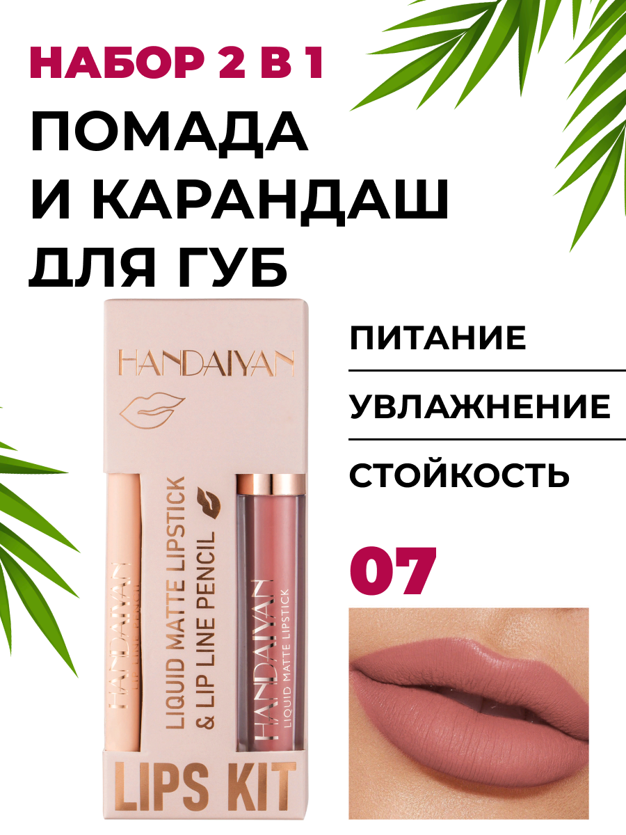 Помада и карандаш 2 в 1 - матовый, сатиновый, стойкий - набор для губ, 07 информация: