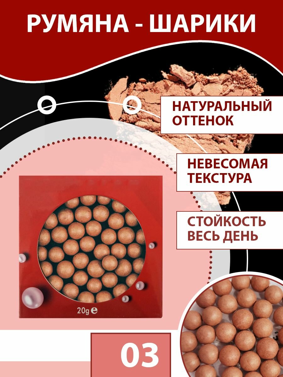 10 цен на Lolocandy Румяна для лица шариковые компактные для макияжа, тон 3